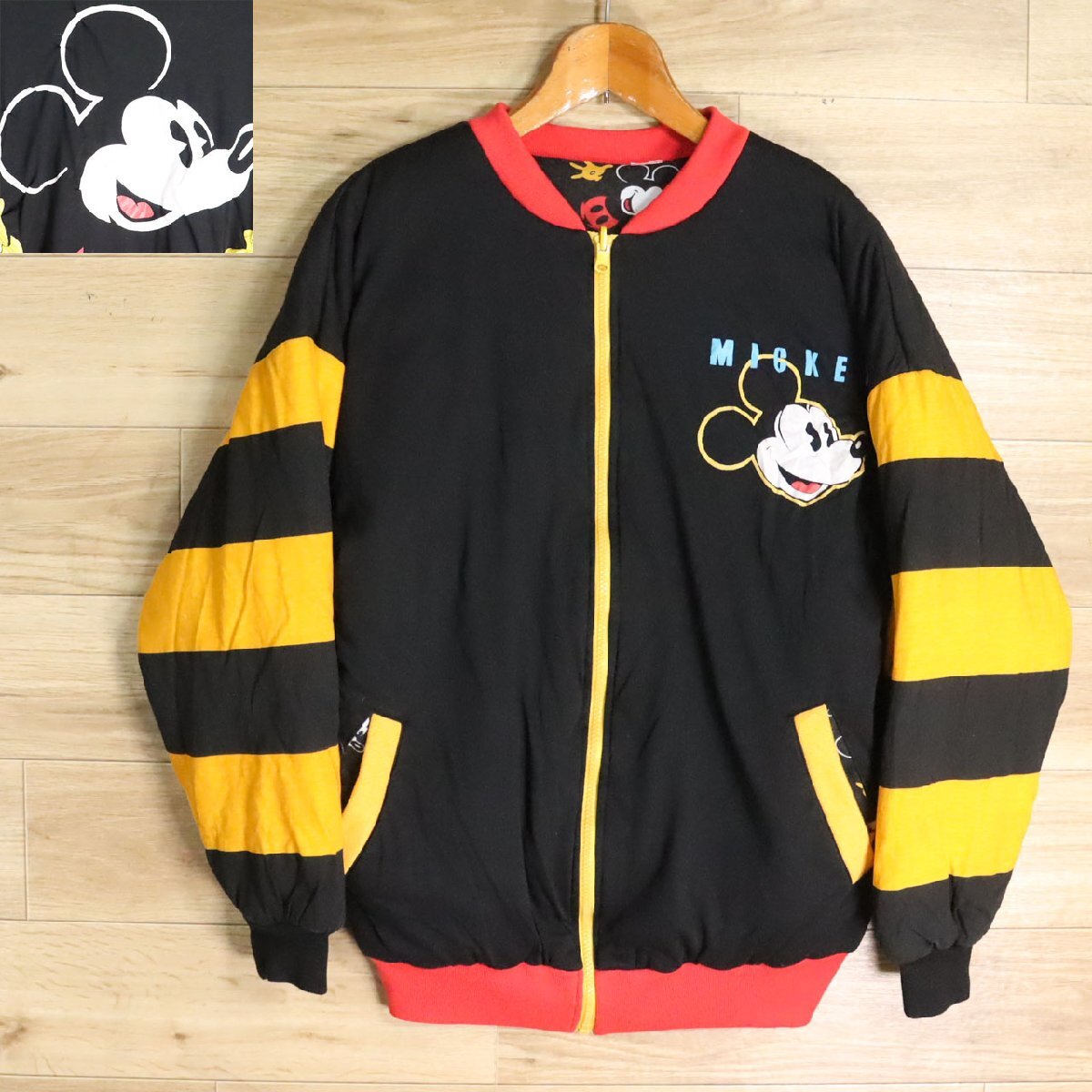 W3Y/D7.23-3 Disney ミッキーマウス リバーシブルジャケット パディングジャケット ジップアップジャケット ブルゾン デザイン