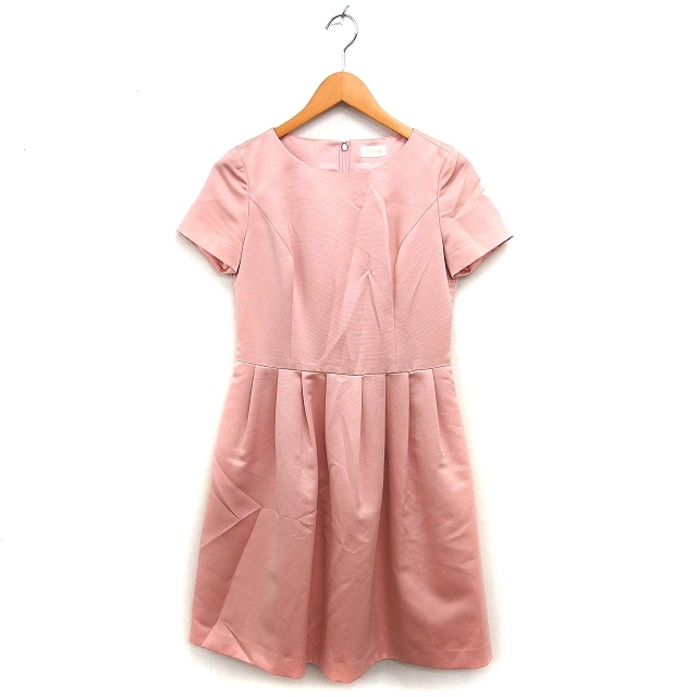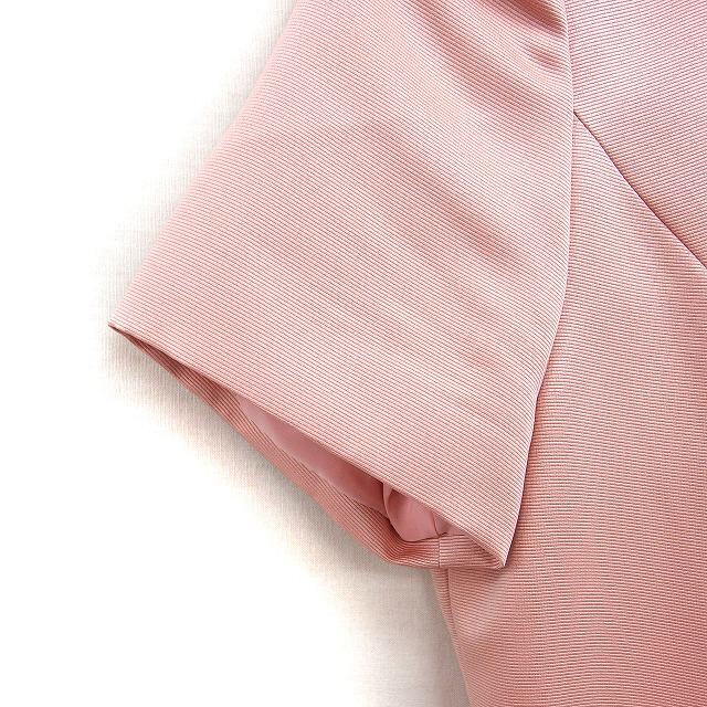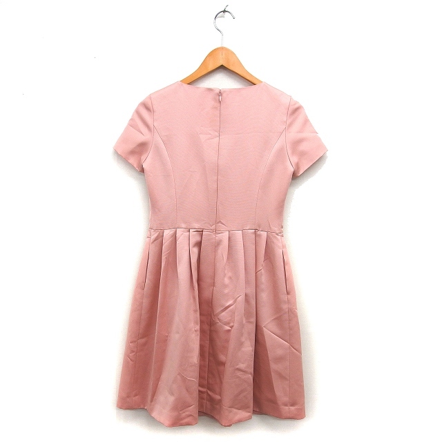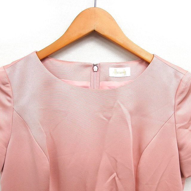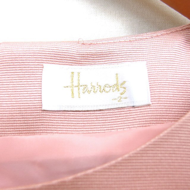 ハロッズ Harrods タック フレア ワンピース ひざ丈 ボートネック バックジップ 半袖 2 コーラルピンク /NT22 レディース