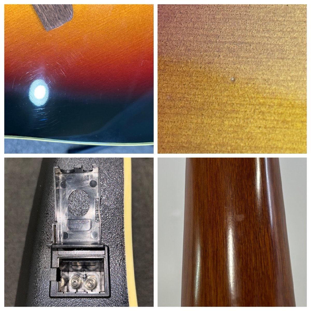 | ◆外観◆ ・★使用に伴うスレはありますが、特に目立つキズや汚れは無く綺麗な状態です。 ・★ボディ:傷・スレあります。 ・★ネック:スレがあります。 ・★ヘッド:スレがあります。 ・★金具:くすみがあります。 ・★ケース:傷・汚れがあります。 |