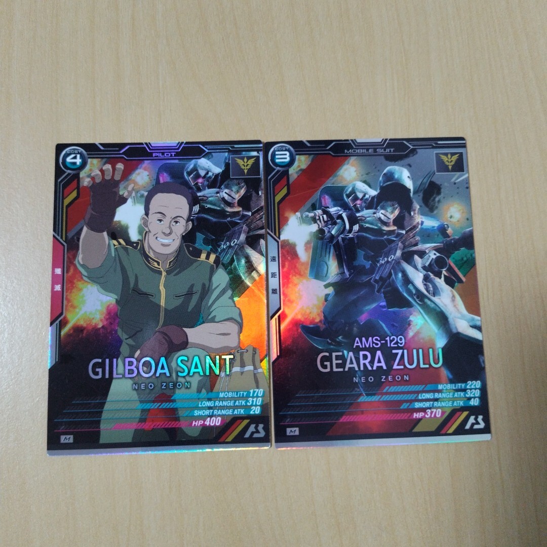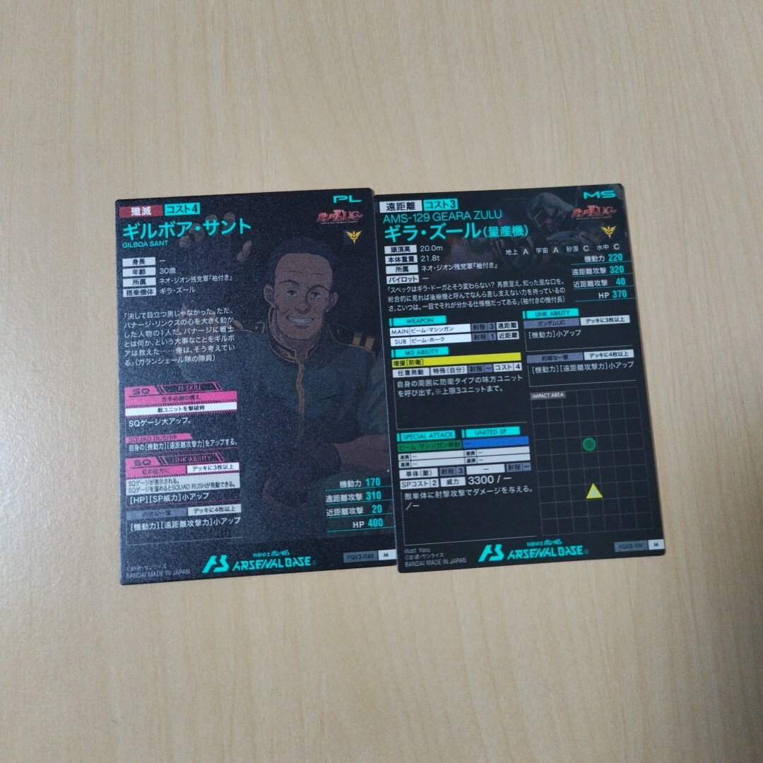 ガンダムアーセナルベース、Mレア、ギラ・ズール(量産機)& ギルボア・サントの出品となります。未使用品です。排出後、スリーブに入れて保管していますが初期キズなど気になさる方はご遠慮ください。配送料金は梱包代込みで全国一律、120円とさせていただきます。他の出品との同梱は対応いたします。ノークレム、ノーリターンにてお願いいたします。