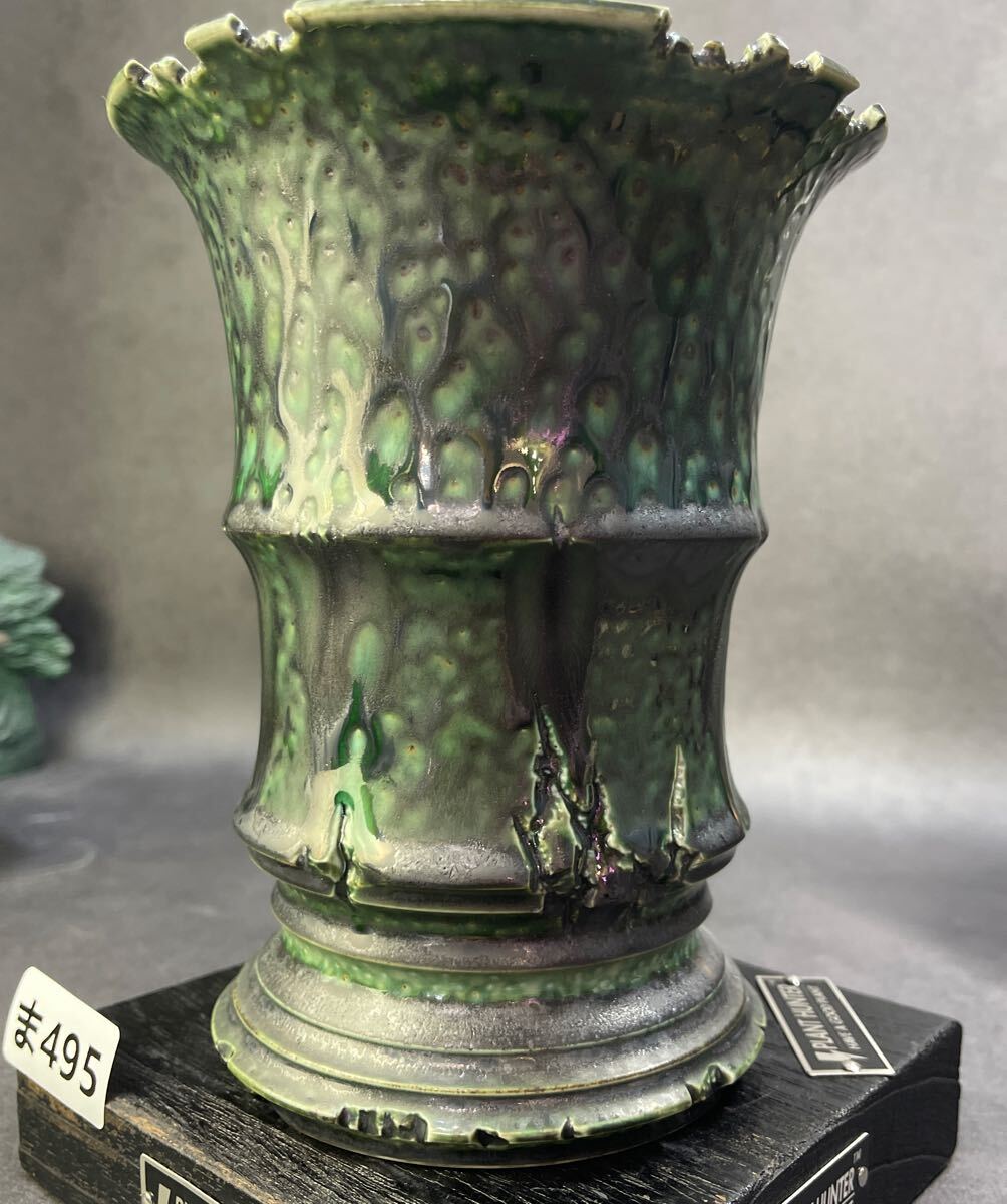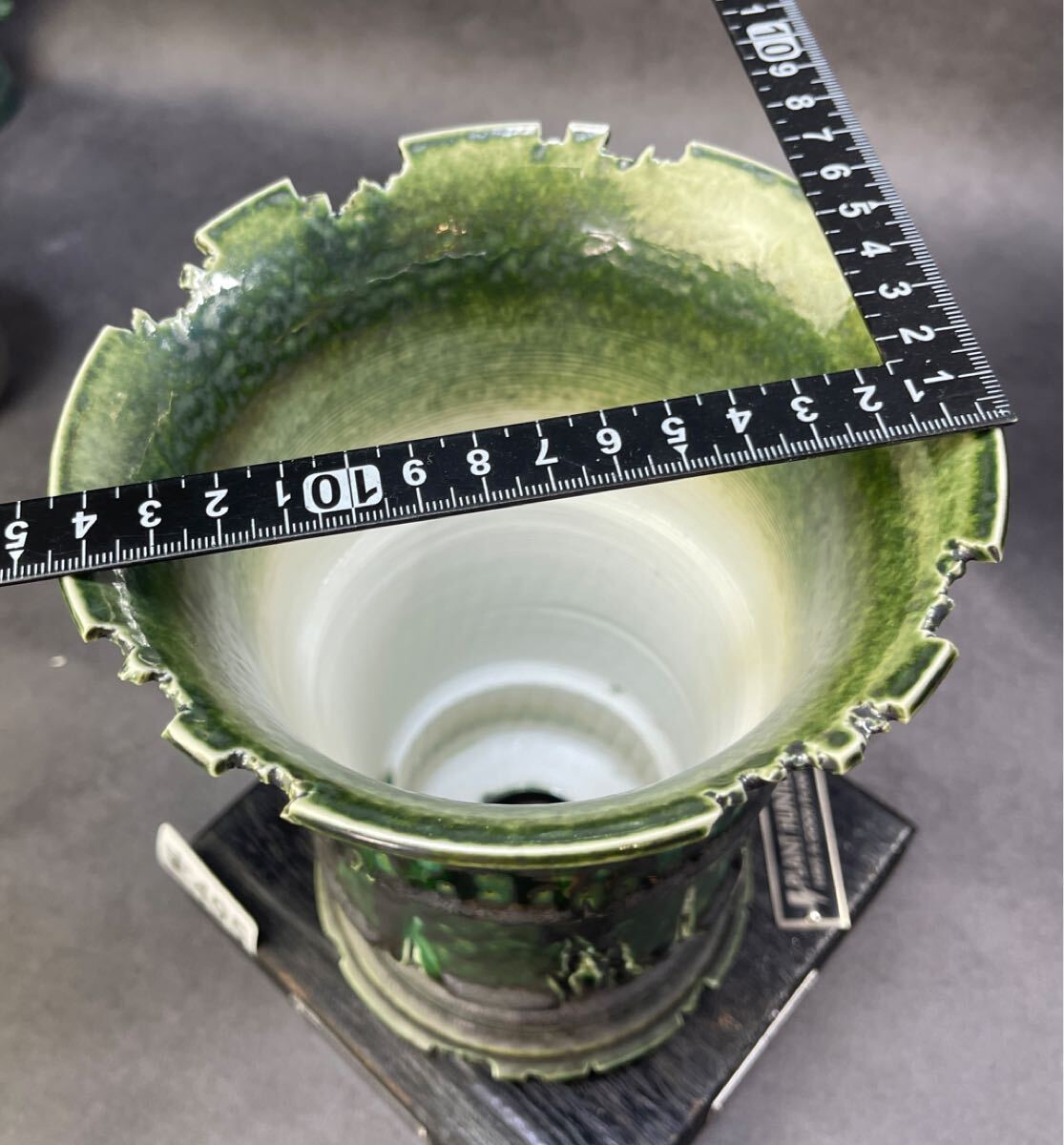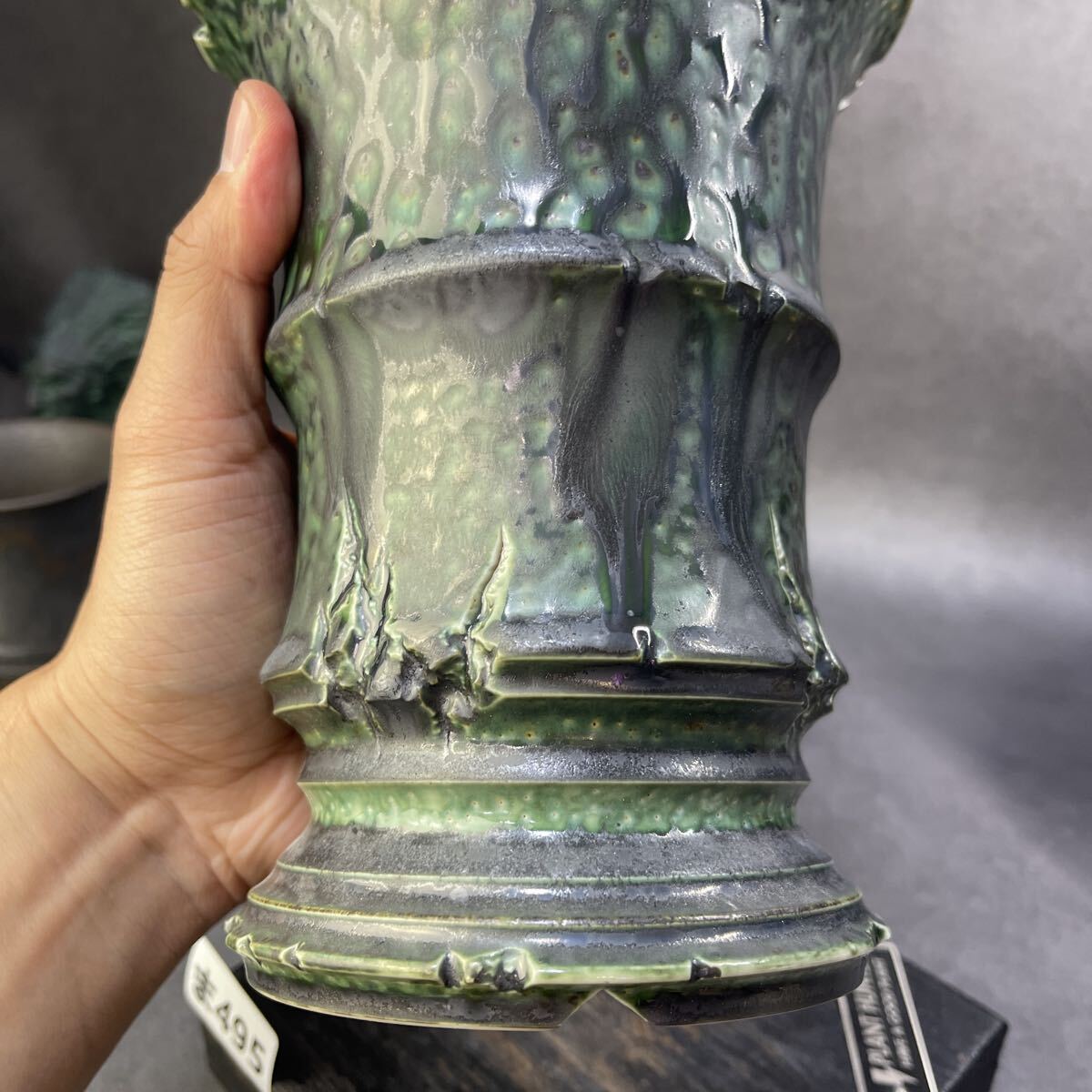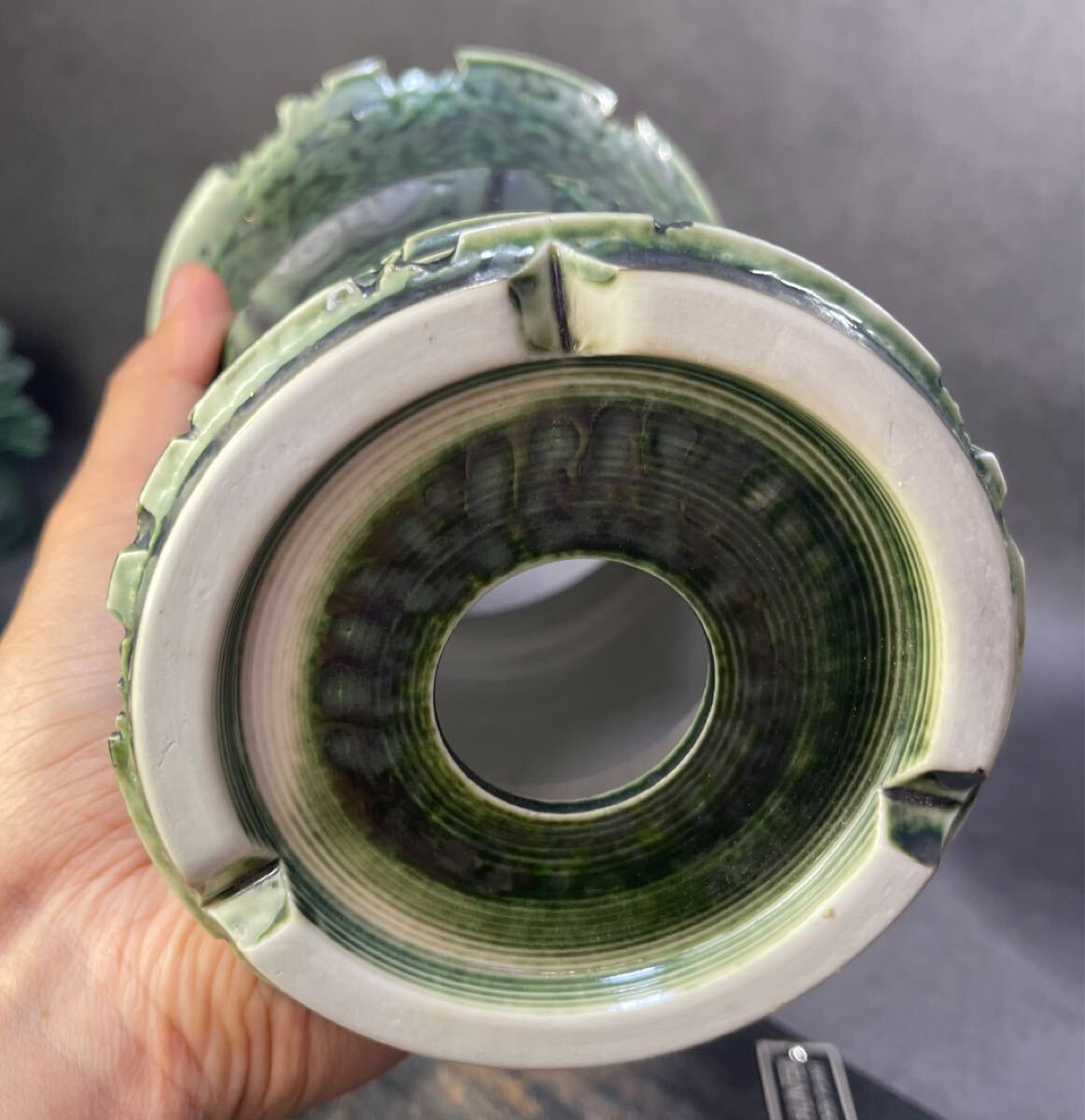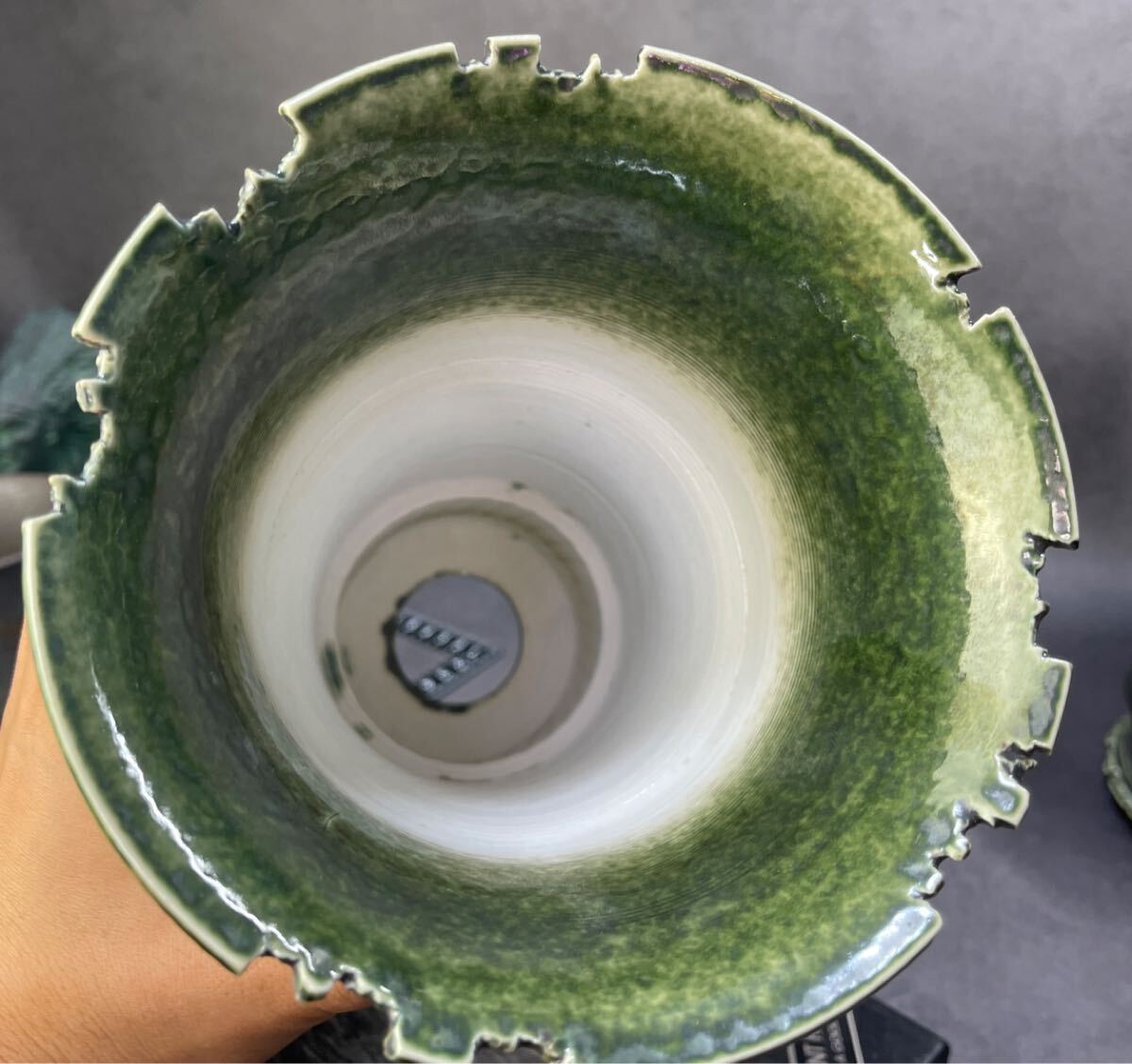 上部の乳白釉が柔らかく流れ、中央の灰藍釉は金属のような光を帯び、
