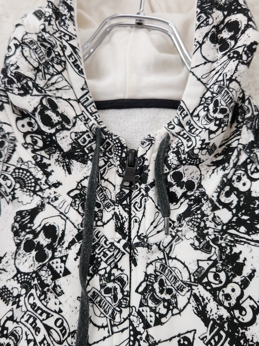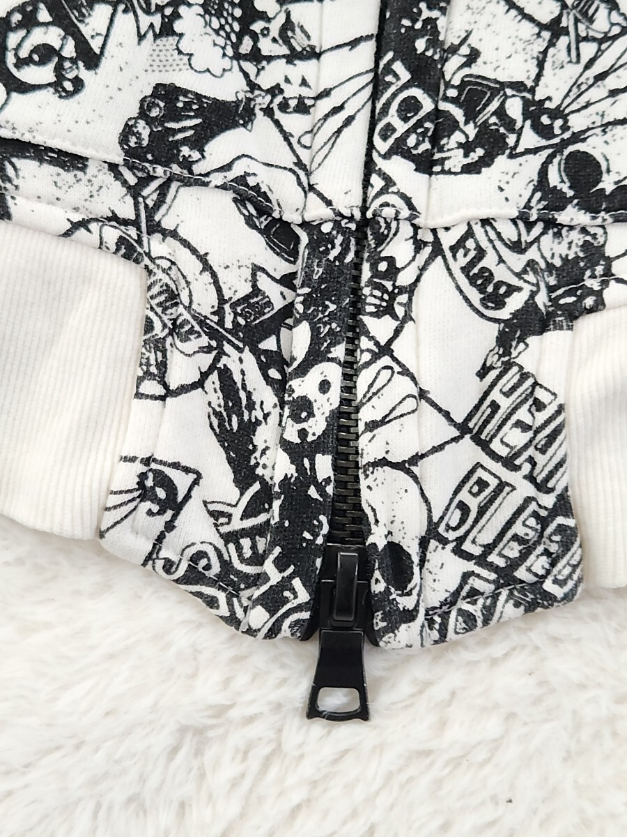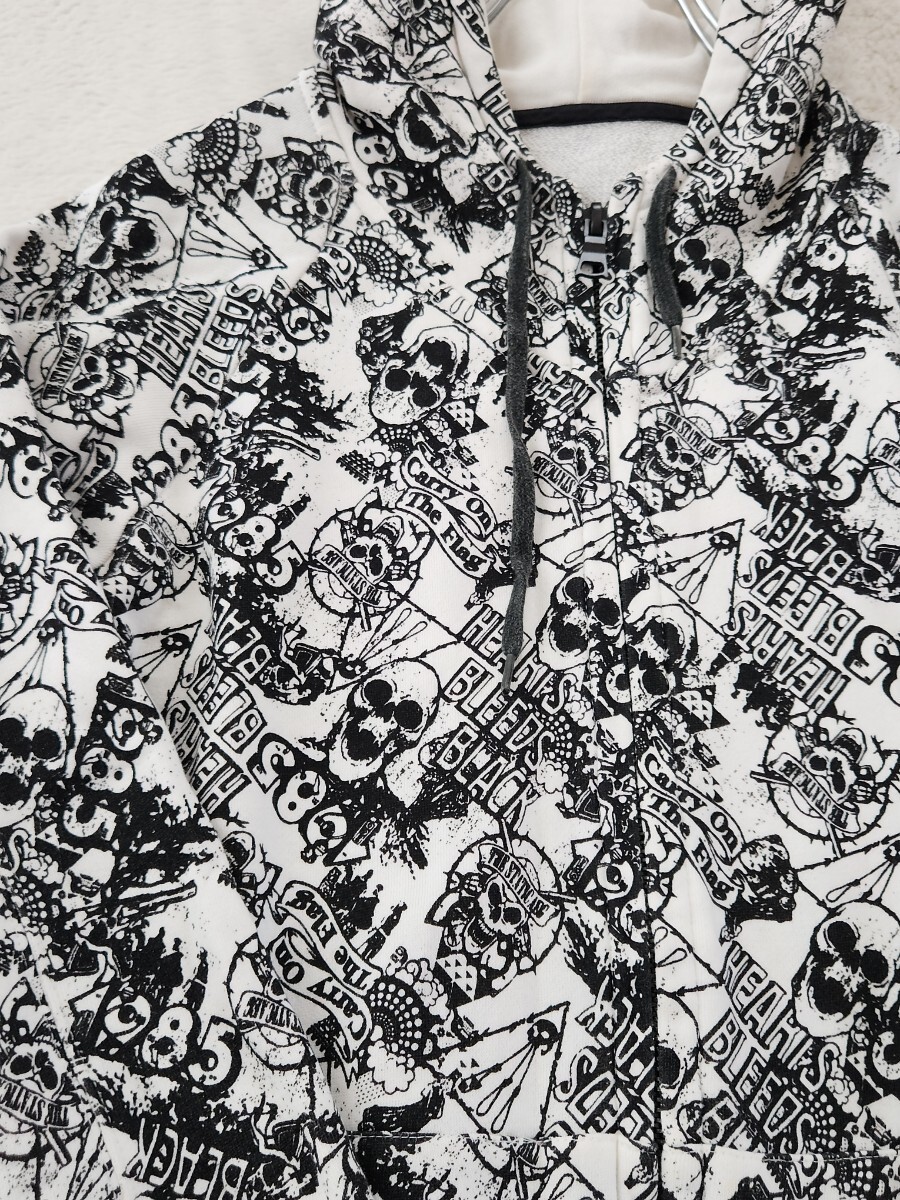 WORLD WIDE LOVE ワールドワイドラブ パーカー ジップアップ フーディ スカル Y2K 裏原 ストリート 総柄 モノトーン