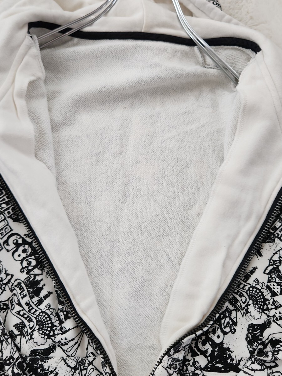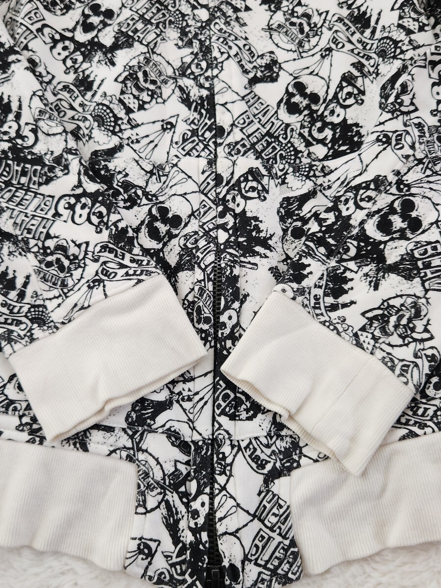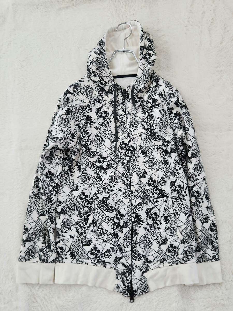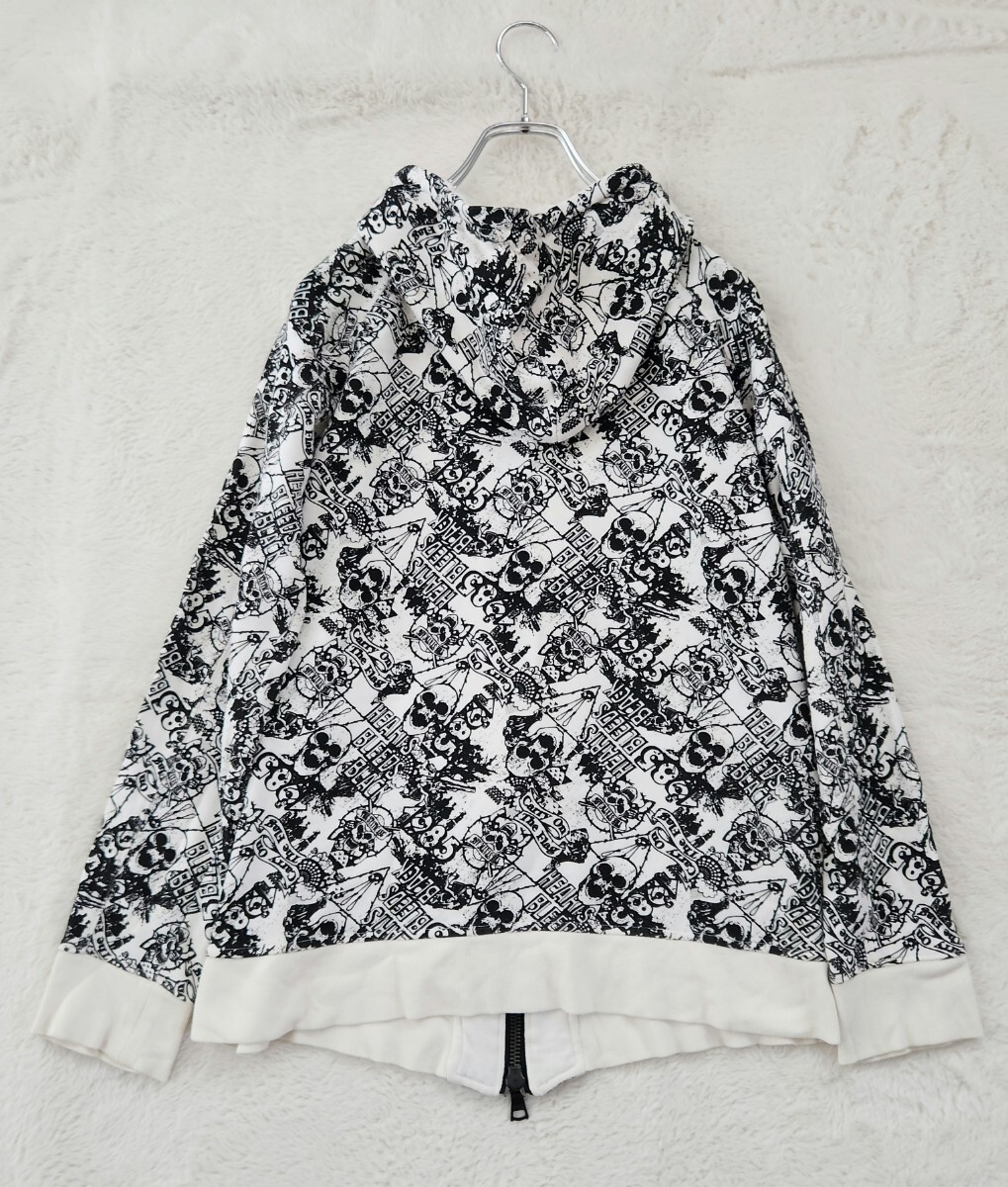 WORLD WIDE LOVE ワールドワイドラブ パーカー ジップアップ フーディ スカル Y2K 裏原 ストリート 総柄 モノトーン