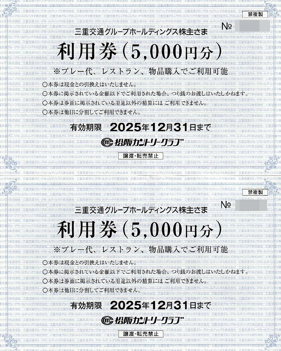 出 品 商 品 | 三重交通HD 株主優待 松阪カントリークラブ 利用券 5000円券×2枚 |