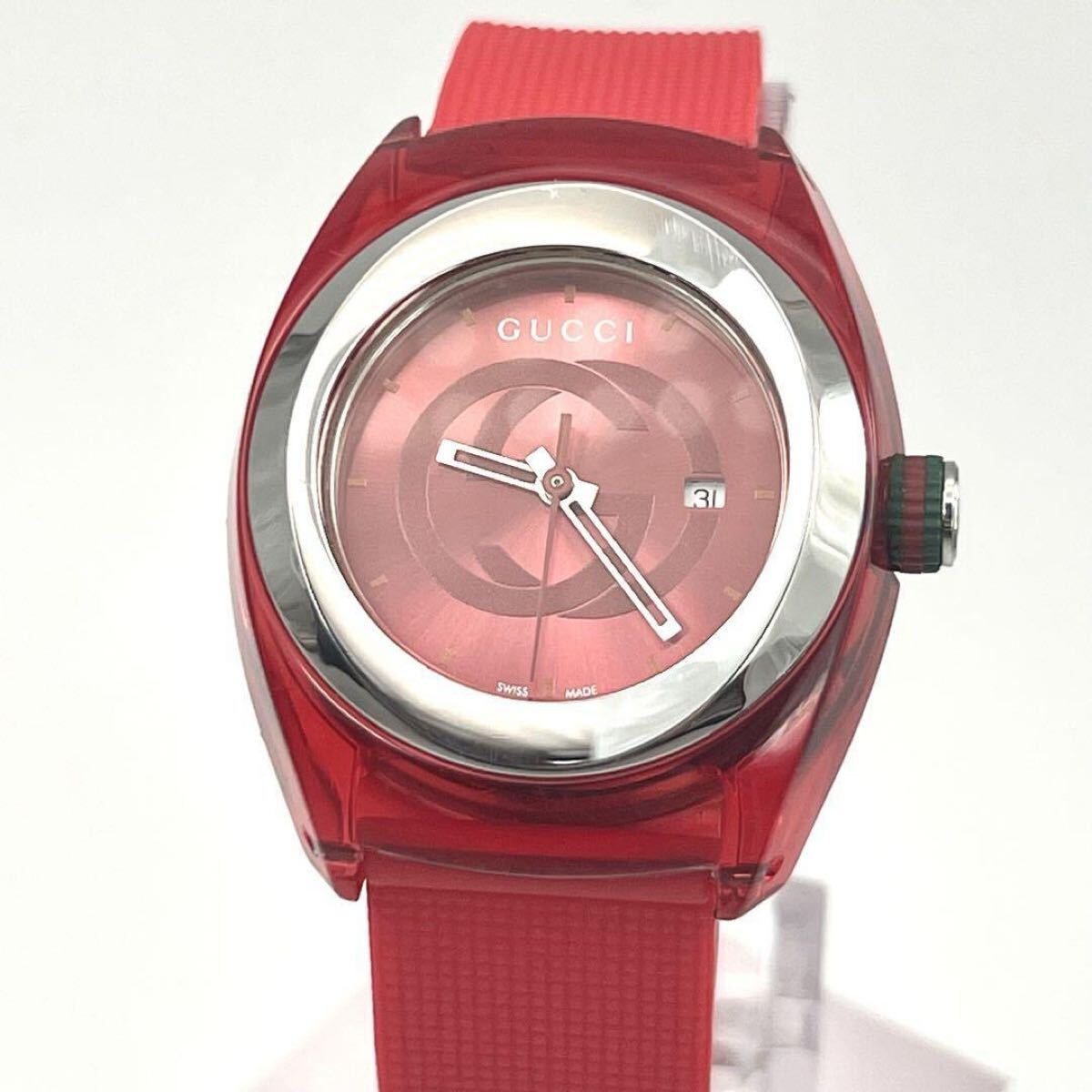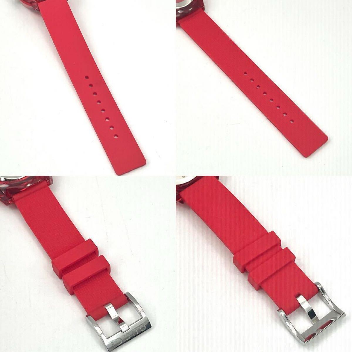 アクティブなライフスタイルを実現するラバーベルト。ディテールに盛り込まれた「グッチ」らしい「シャリーライン」のカラーコンビネーションが融合し、手元を「ラグジュアリー&スポーティ」に演出します。