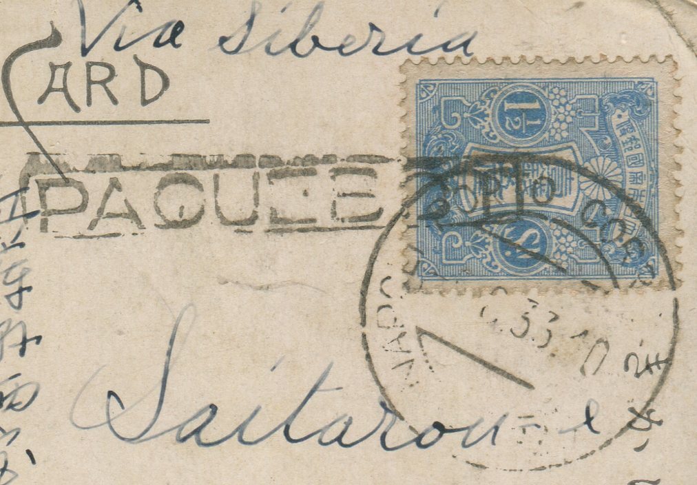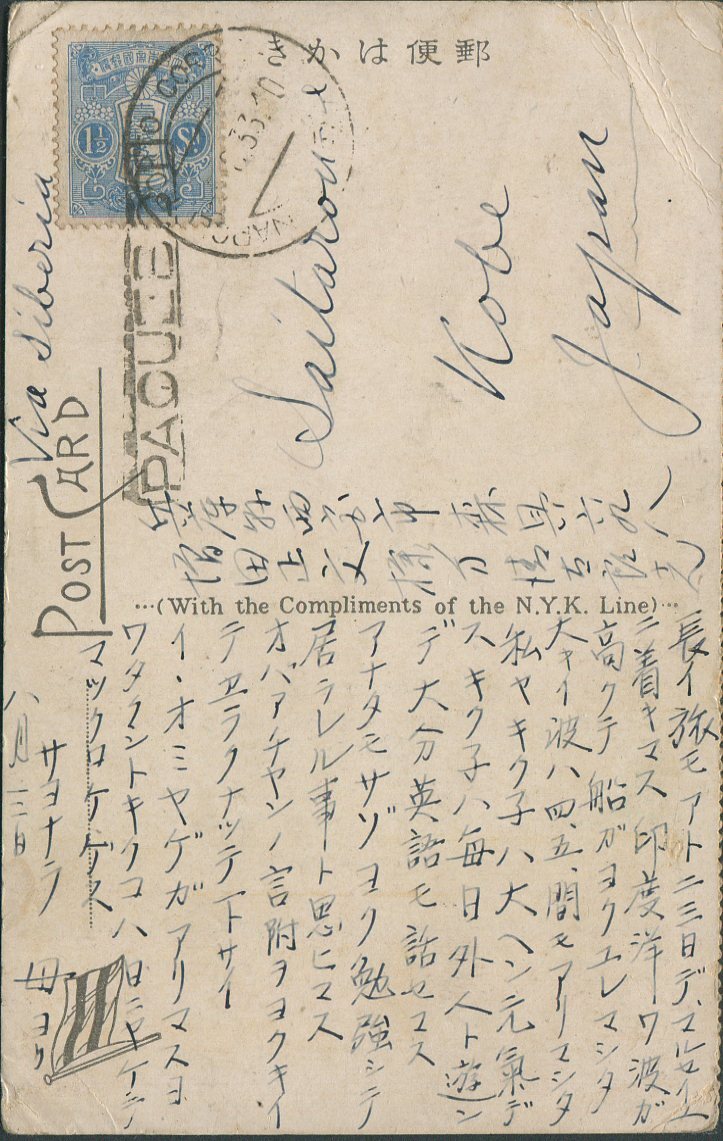 ★ 説明:郵船の下部切取りミシン目付絵はがきが美しい。新毛使用例に十分であろう。