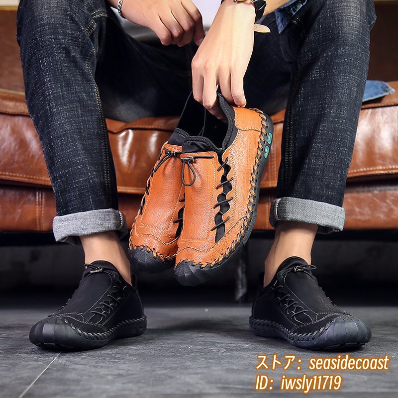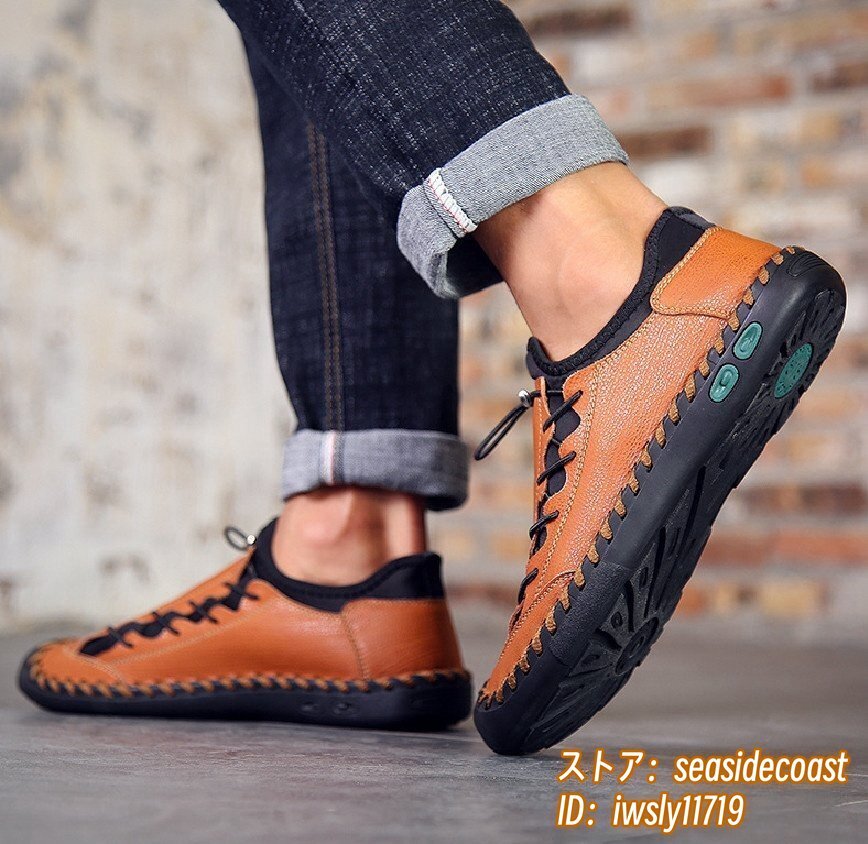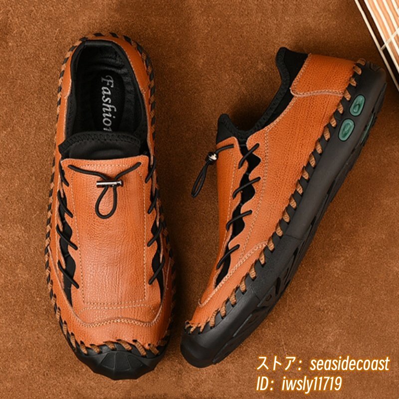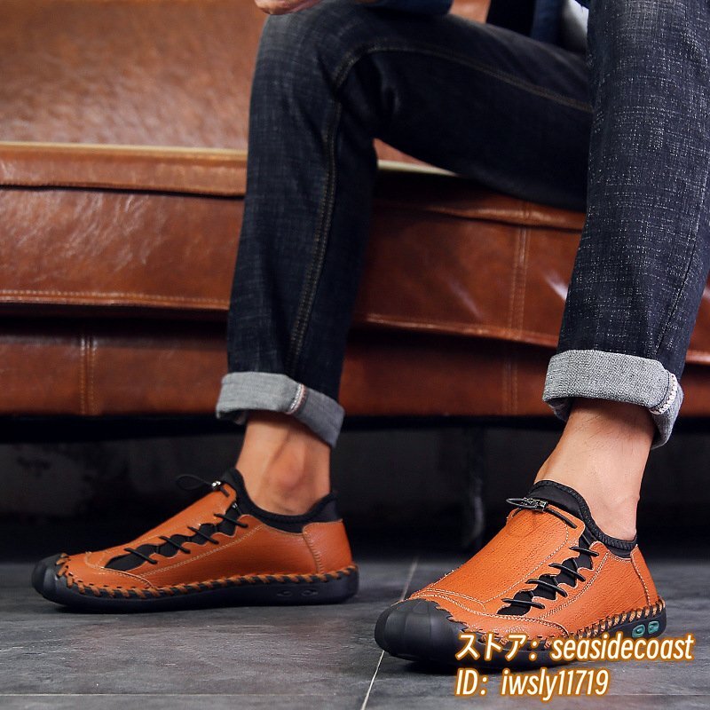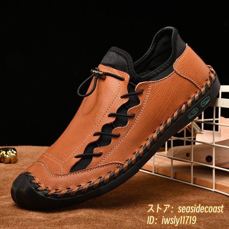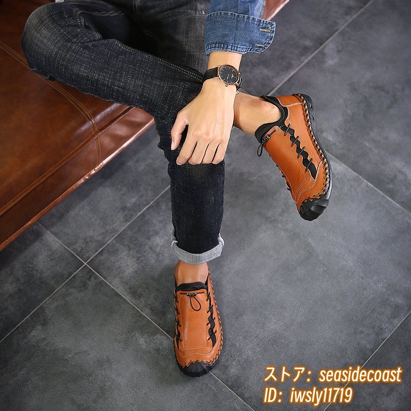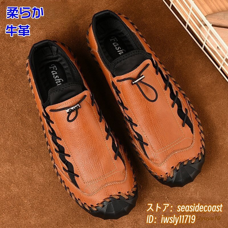 人気新品■ウォーキングシューズ メンズ ローファー 本革 レザーシューズ 軽量 スニーカー 高級 スリッポン 紳士靴 通気性 ブラウン 26.0cm