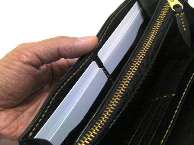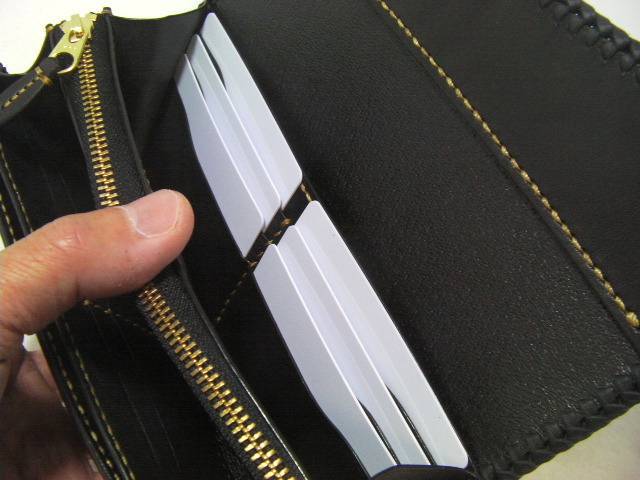 大型長財布ではありますが、一般的な長財布に比べて極端に大きなサイズではありません。カードの出し入れ、紙幣の収納のし易さ等を考慮しながら、使い込んだ後にも更に使い易くなるような絶妙なサイズ感を設定しています。