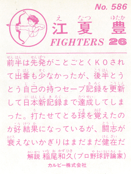 【極美品】カルビー1983 江夏豊(日本ハム) レギュラーカード #586