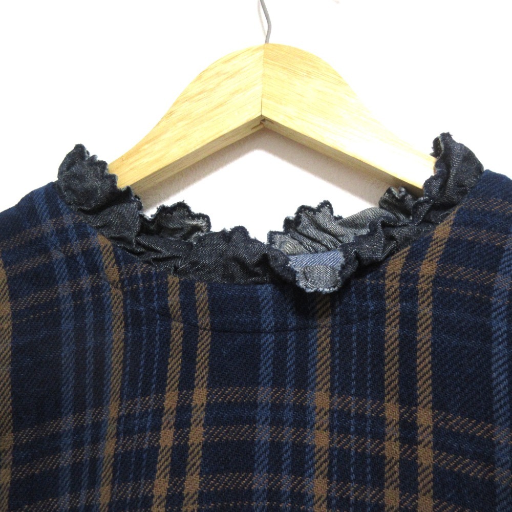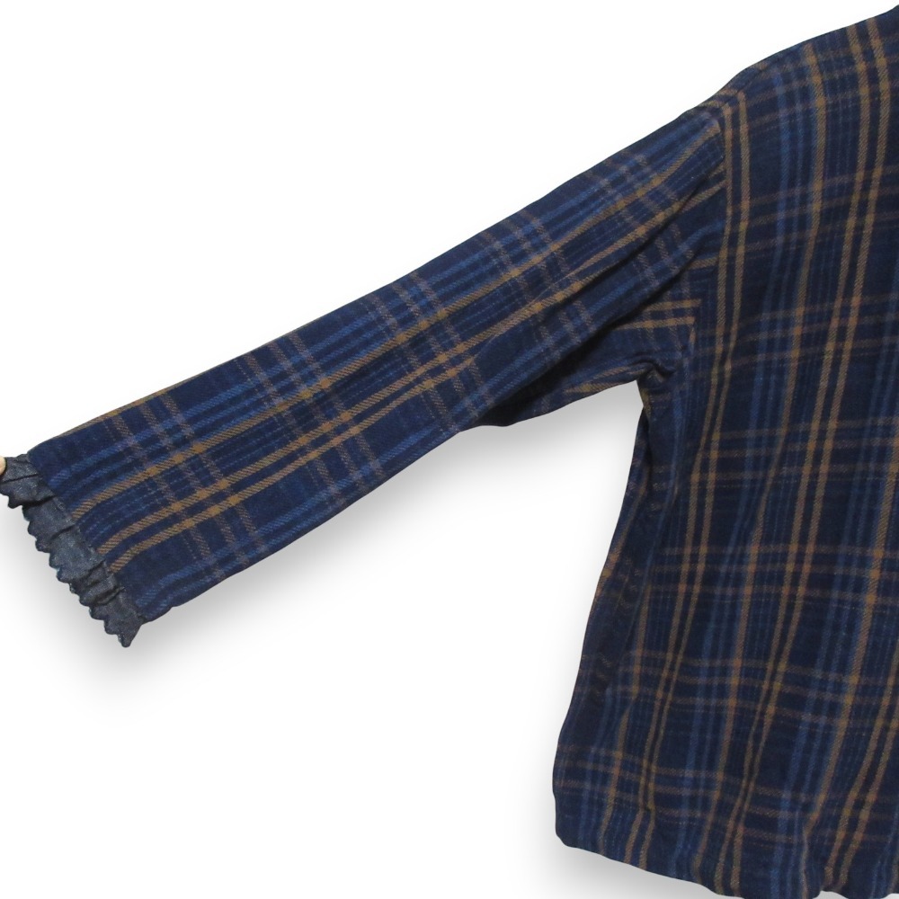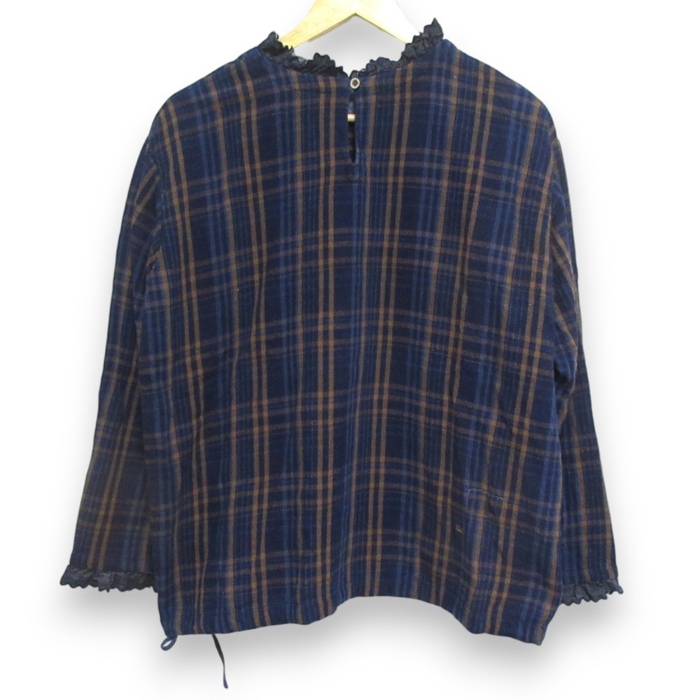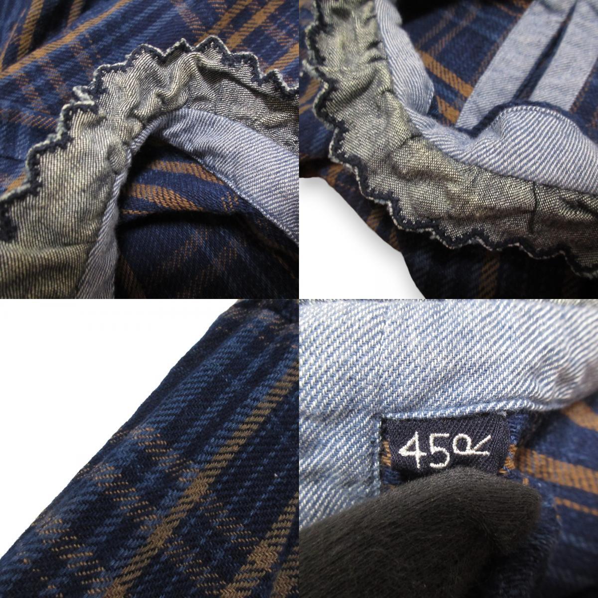 良品 45R フォーティーファイブアール 藍ざっくりネルのフリルTシャツ チェック柄 長袖 ブラウス 71130084 サイズ3 ネイビー系