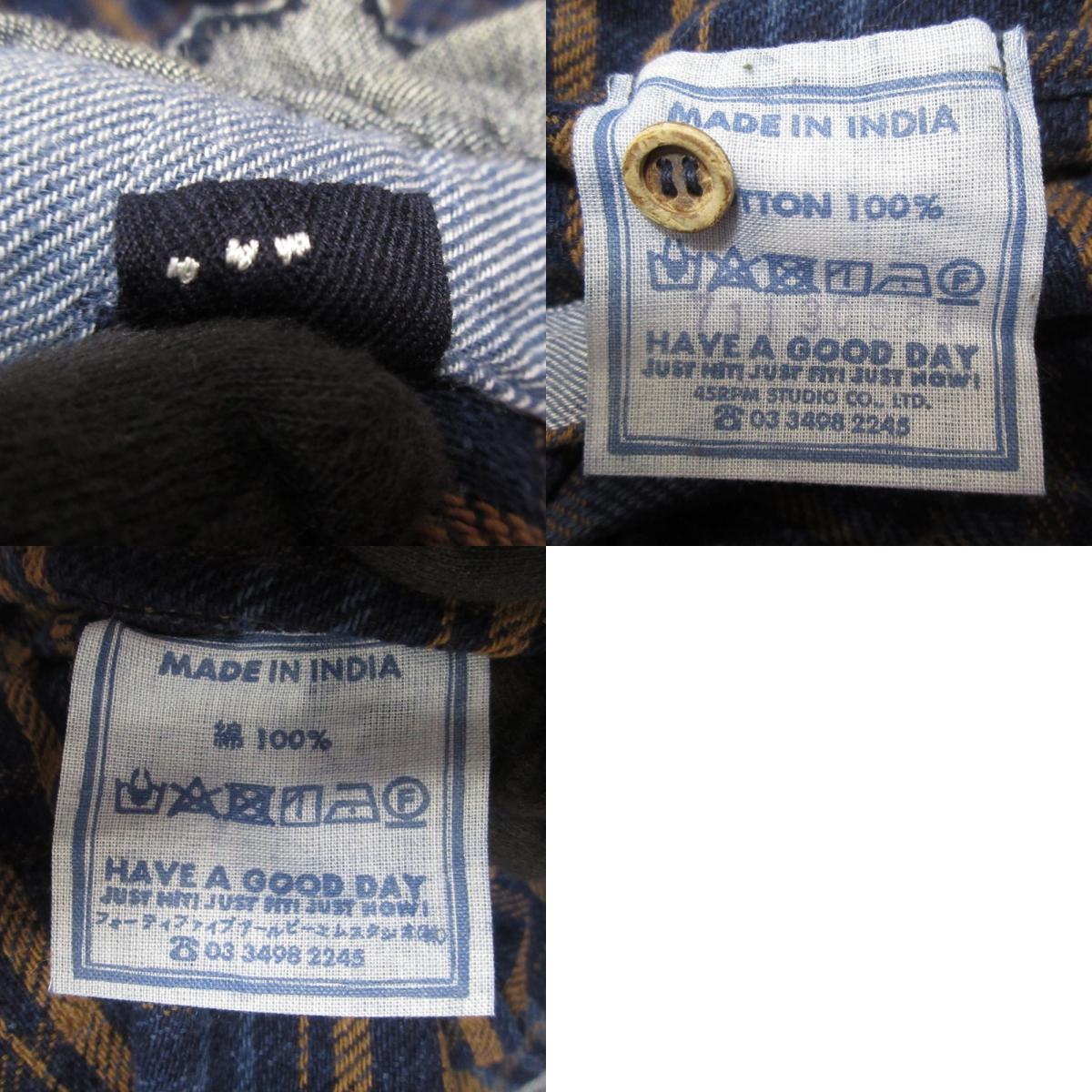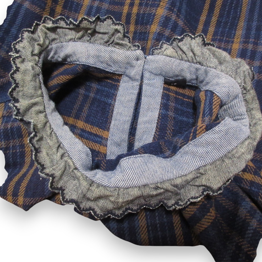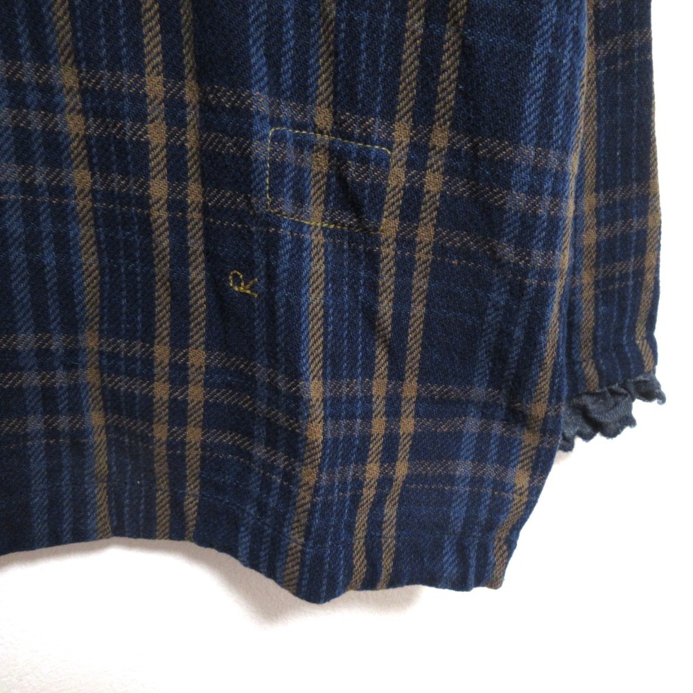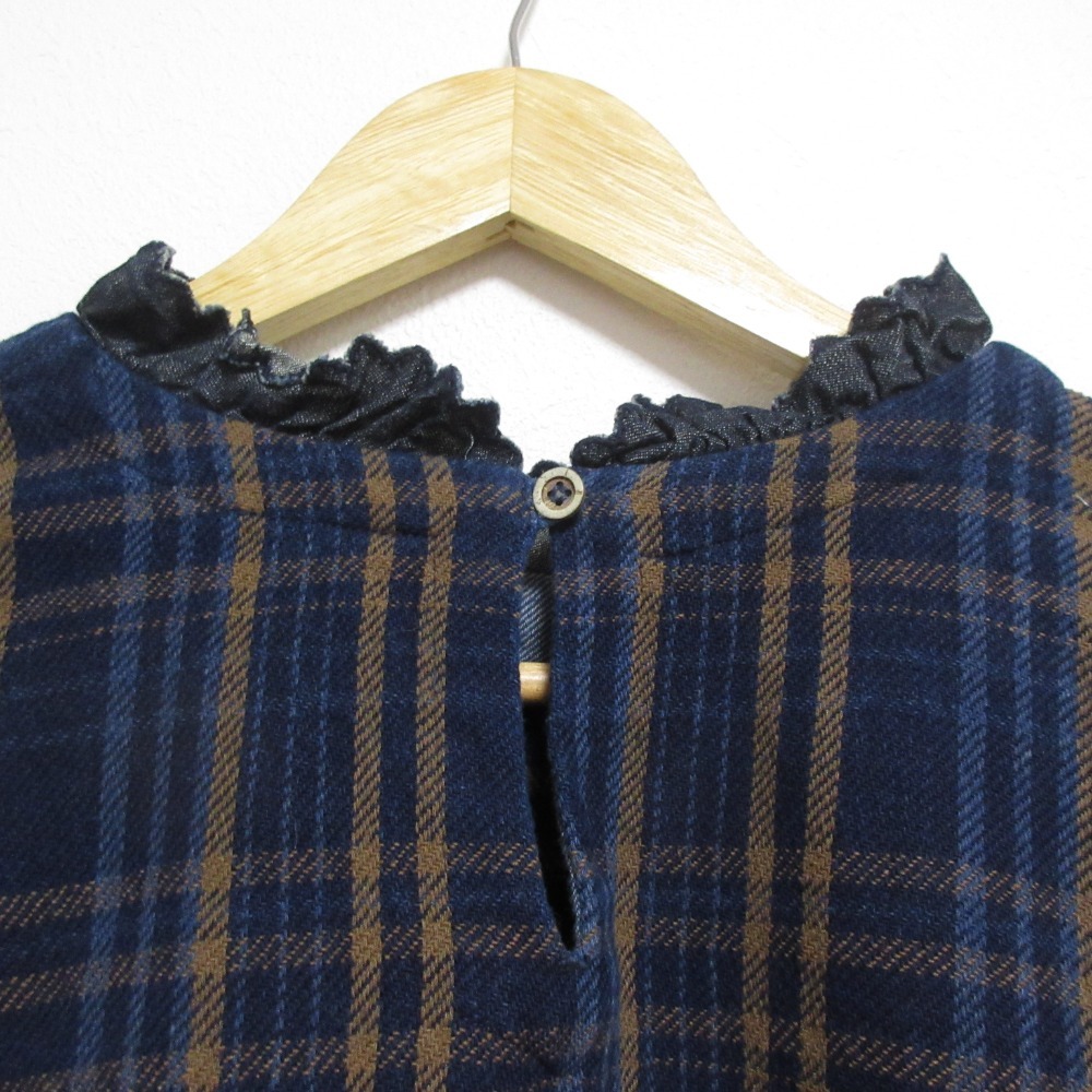 良品 45R フォーティーファイブアール 藍ざっくりネルのフリルTシャツ チェック柄 長袖 ブラウス 71130084 サイズ3 ネイビー系
