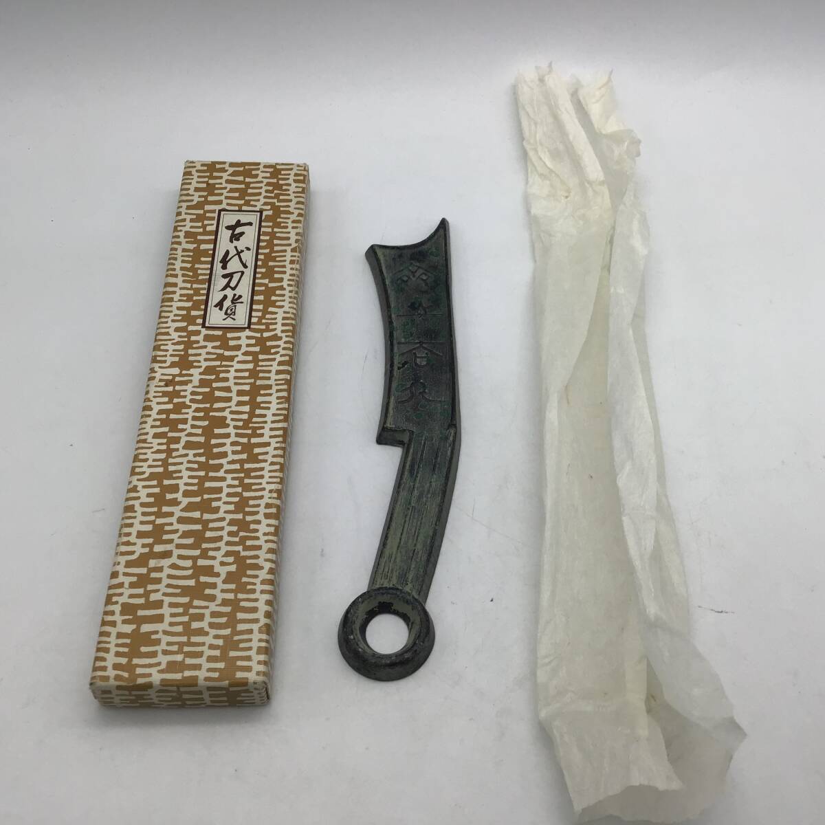 #2427 古代刀貨 中国レプリカ型貨幣 文鎮鉄製 書道道具 ペーパーウエイト 箱付き アンティーク雑貨 置物 小物