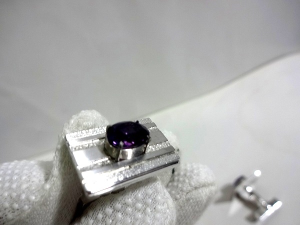 X5J028◆新品未使用◆ シルバー&アメジスト SILVER900 カフス ネクタイピン セット