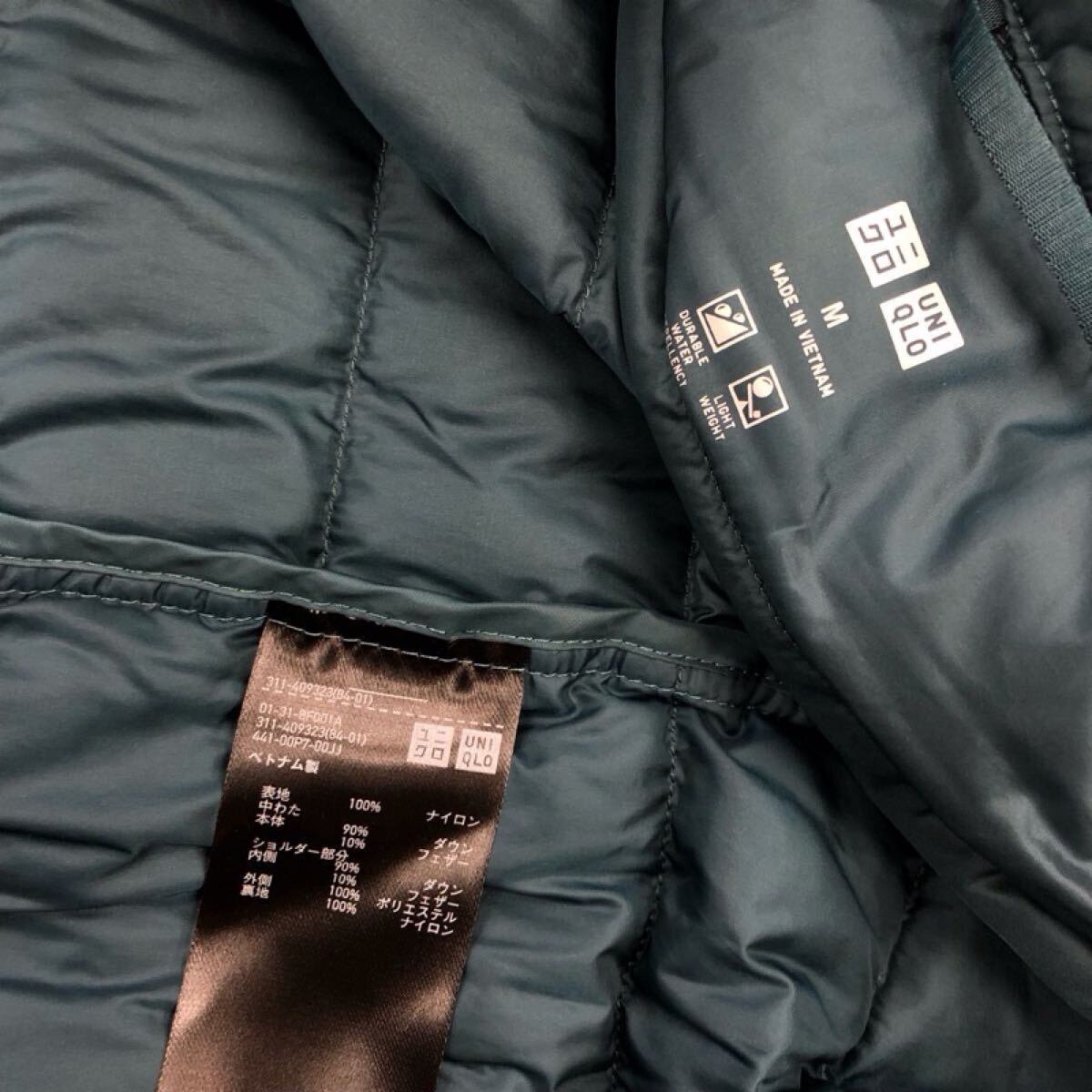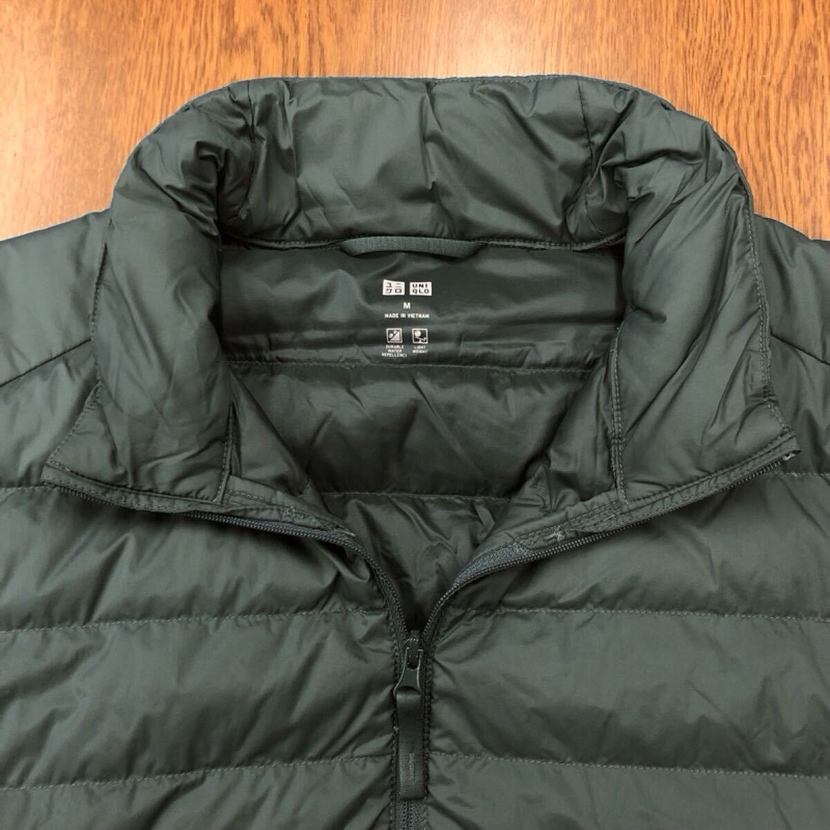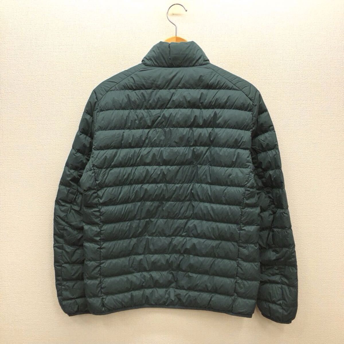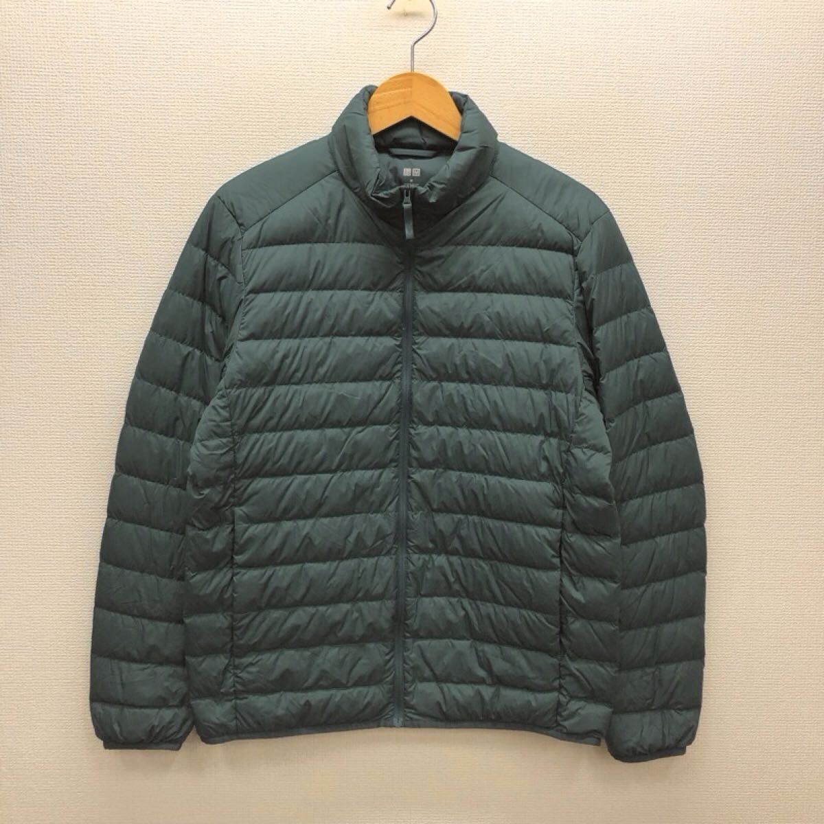 【め086】UNIQLO ライトダウンジャケット Mサイズ グリーン 長袖 スタンドカラー 耐久撥水加工 メンズブランド古着 ユニクロ 送料無料