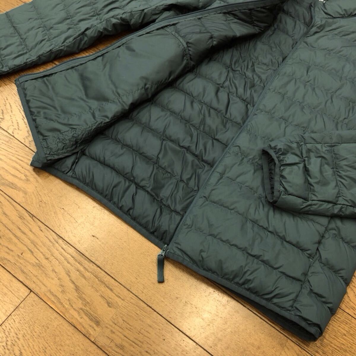 【その他】メンズ、ジャケット、ジャンパー、インナーダウン、コンパクトダウン、長袖、軽量ダウン、スタンドカラー、袖口ゴム、裾ゴム、耐久撥水加工、ポケットジップ、保存用の袋はありません。