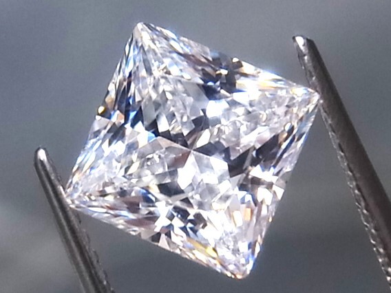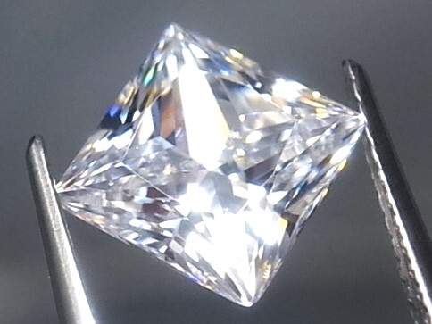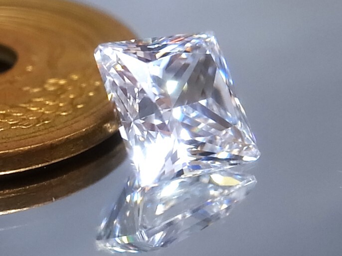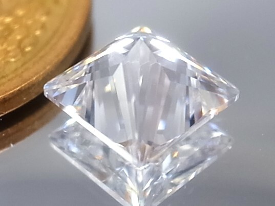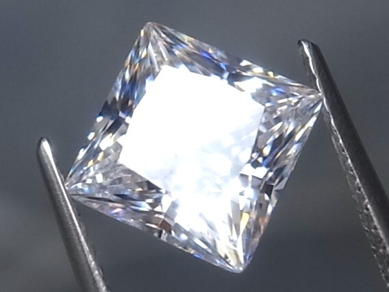 5.18ct 8x8㎜ VVSランク級で極上のカット品質・プリンセスカット キュービックジルコニア カット面が多く最高品質の輝きの特級品です