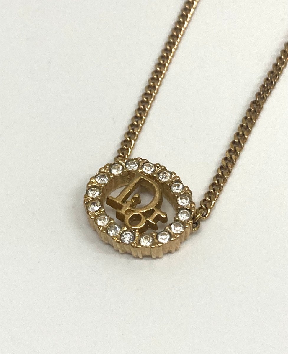 クリスチャン ディオール ラインストーン CDロゴ CD ロゴ ネックレス ゴールドカラー ブランド アクセサリー