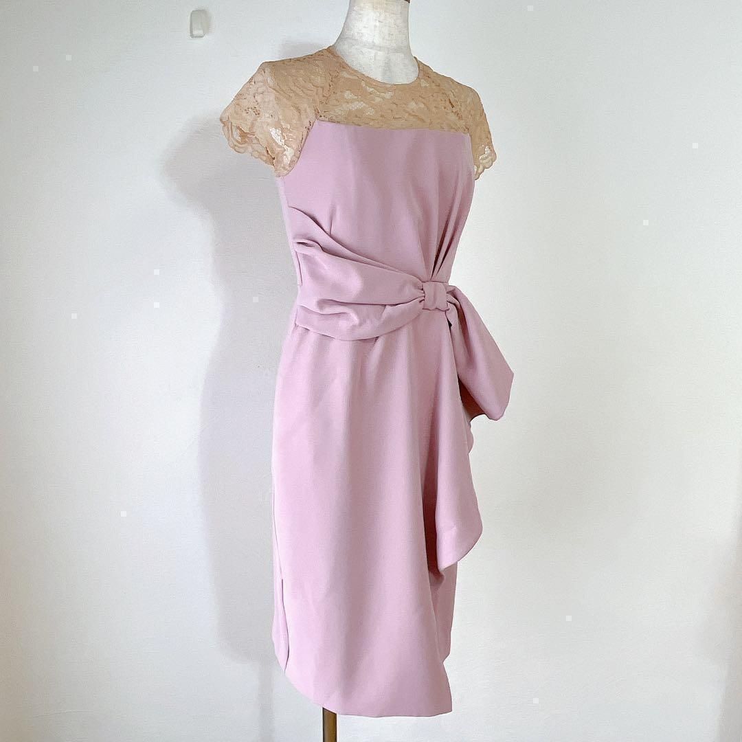 ウェストリボンディティールからスカートのラップ部分に施されたラッフルデザインがフェミニンな印象の、とてもとても素敵なタイトドレスです☆