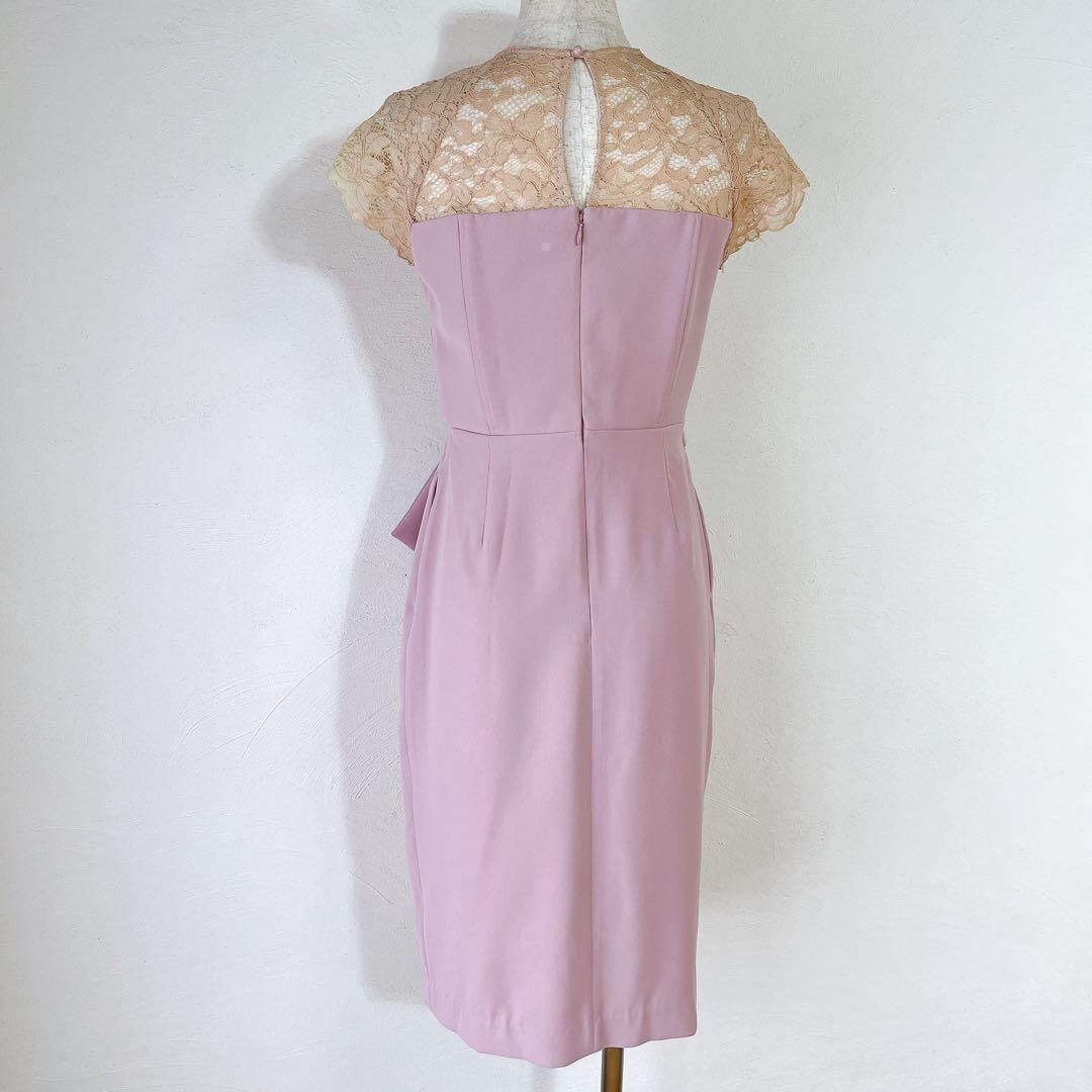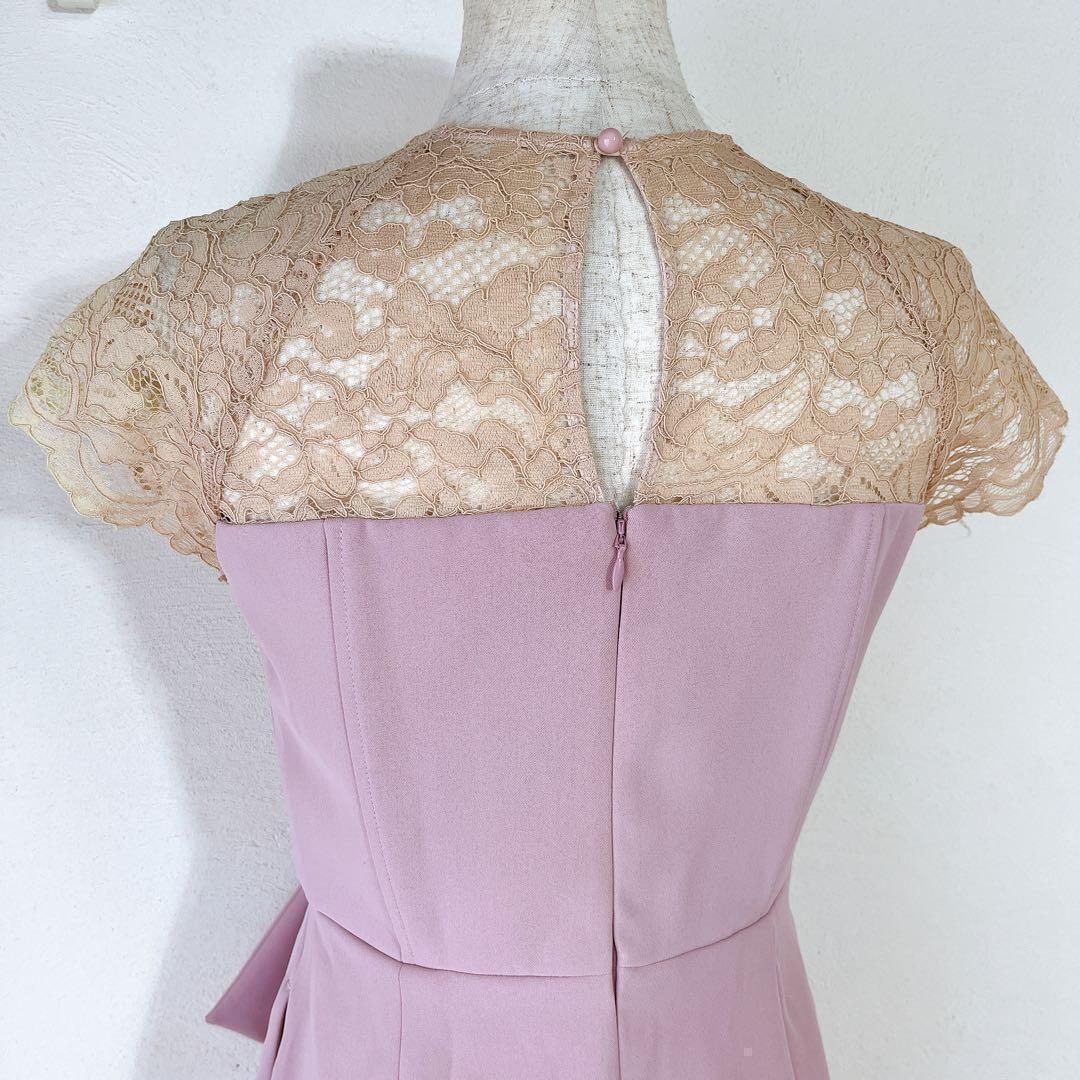 デコルテグラデーションレース 異素材 切替 ラッフルリボンタイト パーティードレス ワンピース レディース