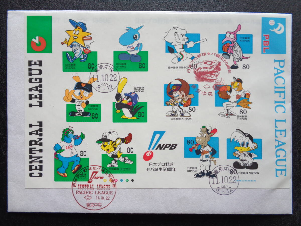 初日カバー     1999年     日本プロ野球セパ生誕50周年