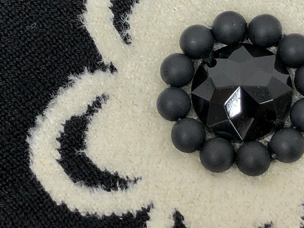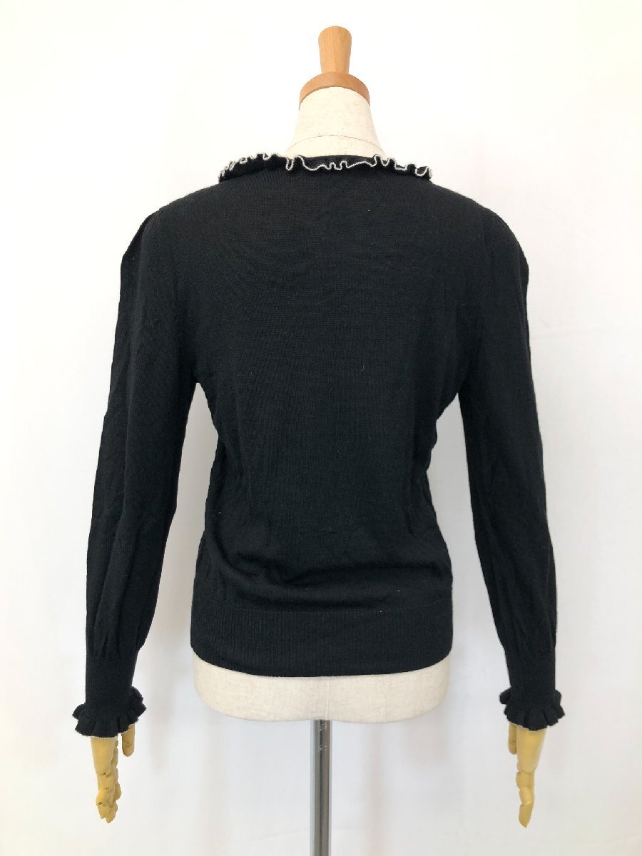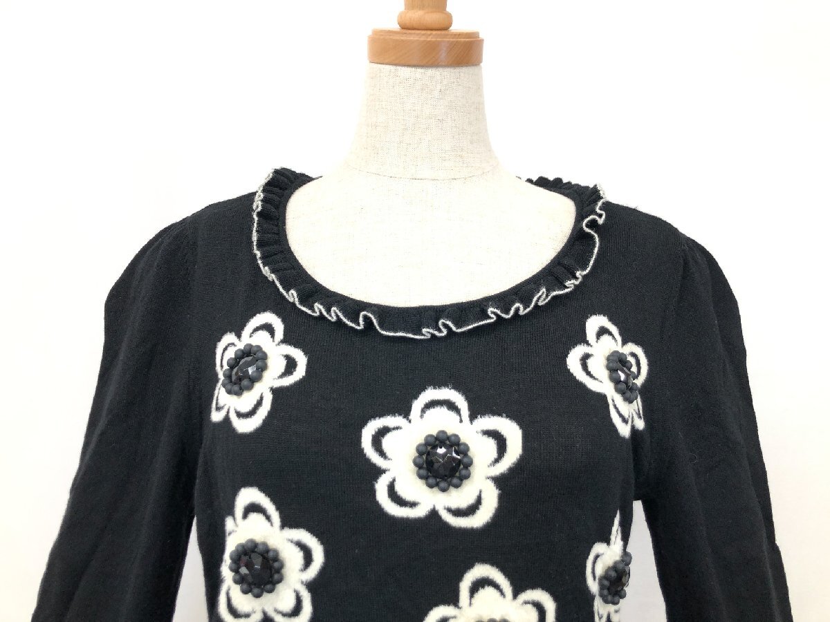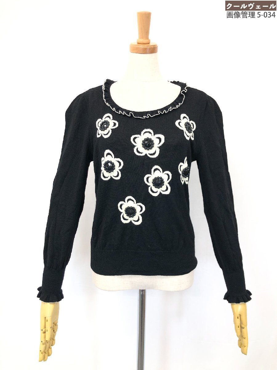 美品【TO BE CHIC トゥービーシック】W5N53-613-09 ビジュー装飾 花柄 フリル ハイゲージニット(レディース)size3 ブラック系 ◇17LN6095◇