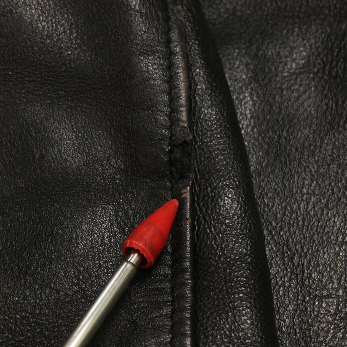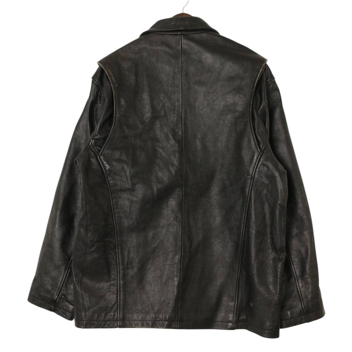 | 【商品管理番号】 A2884 【サイズ】 L 【実寸サイズ】 肩幅:約59cm 着丈:約80.5cm 身幅:約65cm 袖丈:約65.5cm 【主な素材】 表地 : レザー 裏地 : 13848 【色】 ブラック 【仕様】 【状態】 特記事項: 全体的に使用感がございます。着用に問題はございません。 | |||
