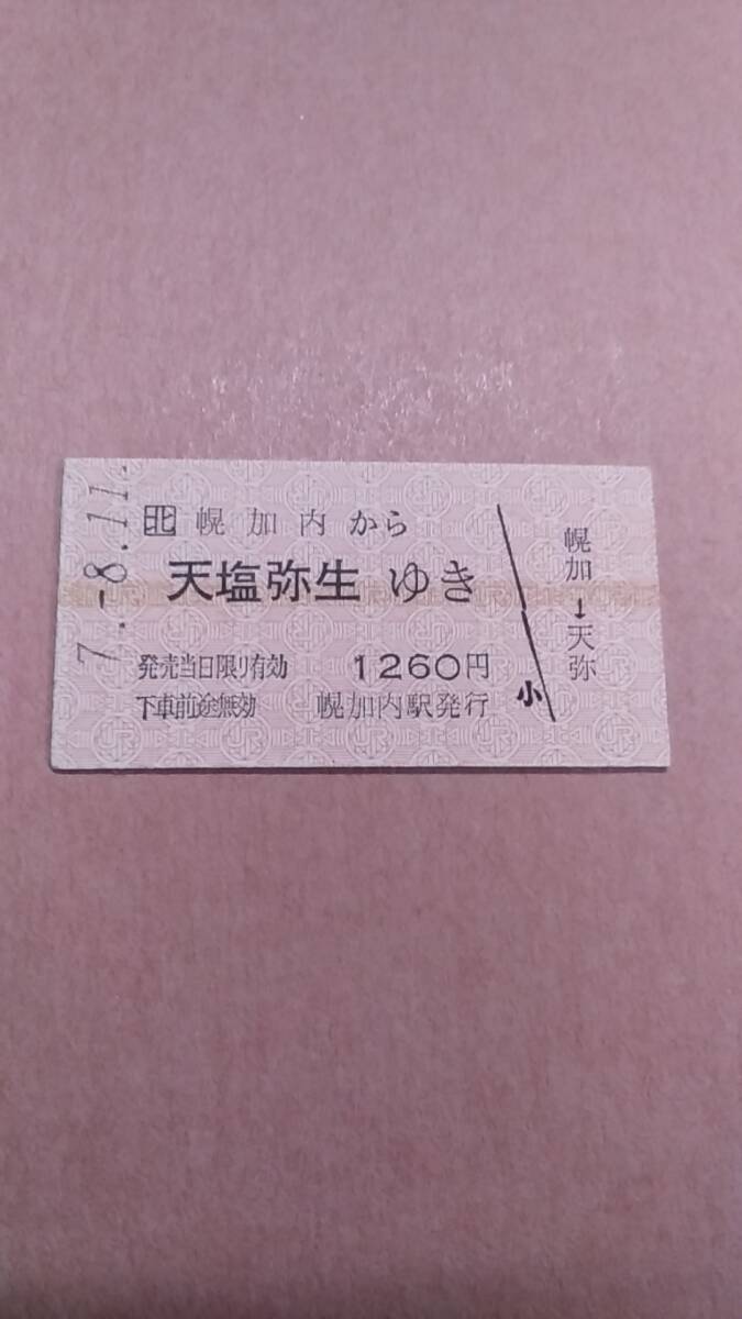 JR北海道 深名線 幌加内から天塩弥生ゆき 1260円 幌加内駅発行