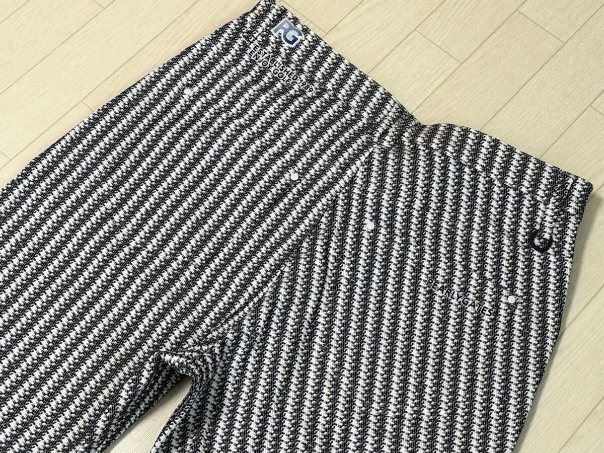 ~秋冬モデル PEARLY GATES パーリーゲイツ 正規品~ パーリーゲイツ PEARLY GATES PG小紋柄 ロゴ刺繍 吸汗速乾 ストレッチ ロングパンツ 新品です。 ルアンチンカルゼストレッチ素材を使用した優れた伸縮性とポリエステル素材のしなやかな風合いを併せ持ったロングパンツに仕上がっています。 高機能ストレッチ素材を使用しているのでゴルフプレー時のスイングも快適に出来、スマートなシルエットが特徴的なロングパンツです。 抗菌防臭加工/ポケット袋布に抗菌作用のある生地を使用。 グリーン上で着映えする発色の良い落ち着いたカラー展開で着回しやすい一本です。 パーリーゲイツらしいデザインとシルエットの中にセンスが光るお洒落なルックスはゴルフ場でも注目の的になること間違いなしです! 株式会社TSIの商品です。ご安心下さいませ。 サイズ:7(ウエスト88-92cm) 【サイズ表】 5:股上31、股下76、裾幅18 6:股上32、股下76、裾幅18.5 7:股上33、股下76、裾幅19 素 材:コットン57%・ 複合繊維 (ポリエステル)43% カラー:ホワイト×ネイビー 特 長:ストレッチ、吸汗速乾、CLEAN POCKETS 定 価:34,100円(税込) 格安出品です。必ず自己紹介欄をご覧になり入札を頂きます様、よろしくお願い致します。 | |||