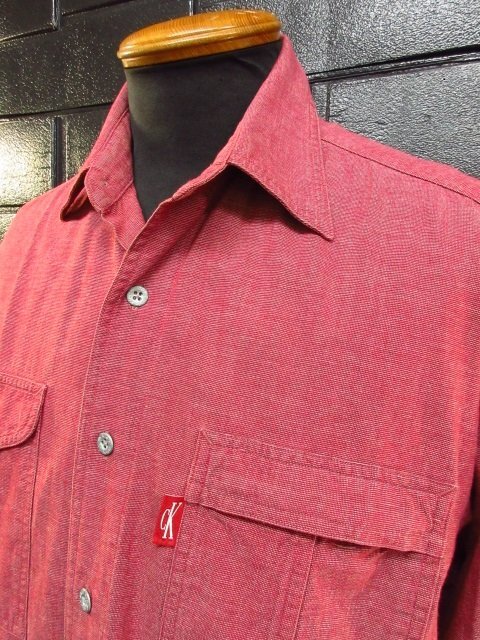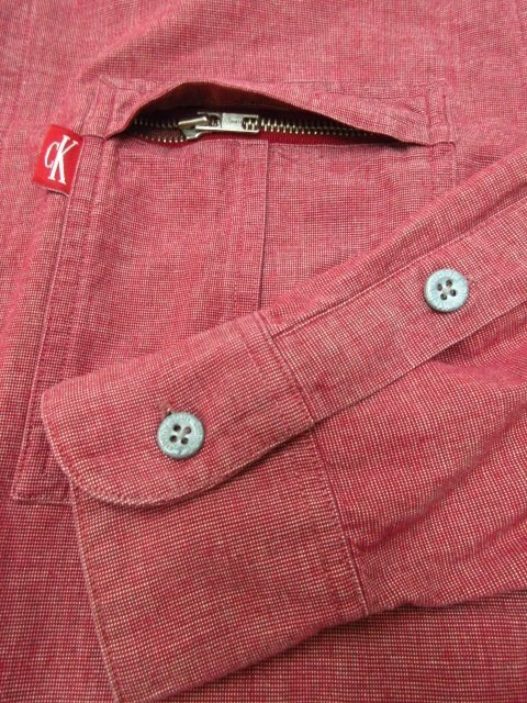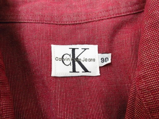 y1885 極美品 Calvin Klein Jeans メンズシャツ 90サイズ CK赤耳タグ メンズ ワークシャツ レッド系 カルバンクラインジーンズ