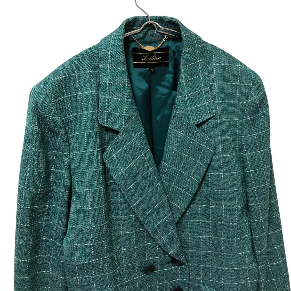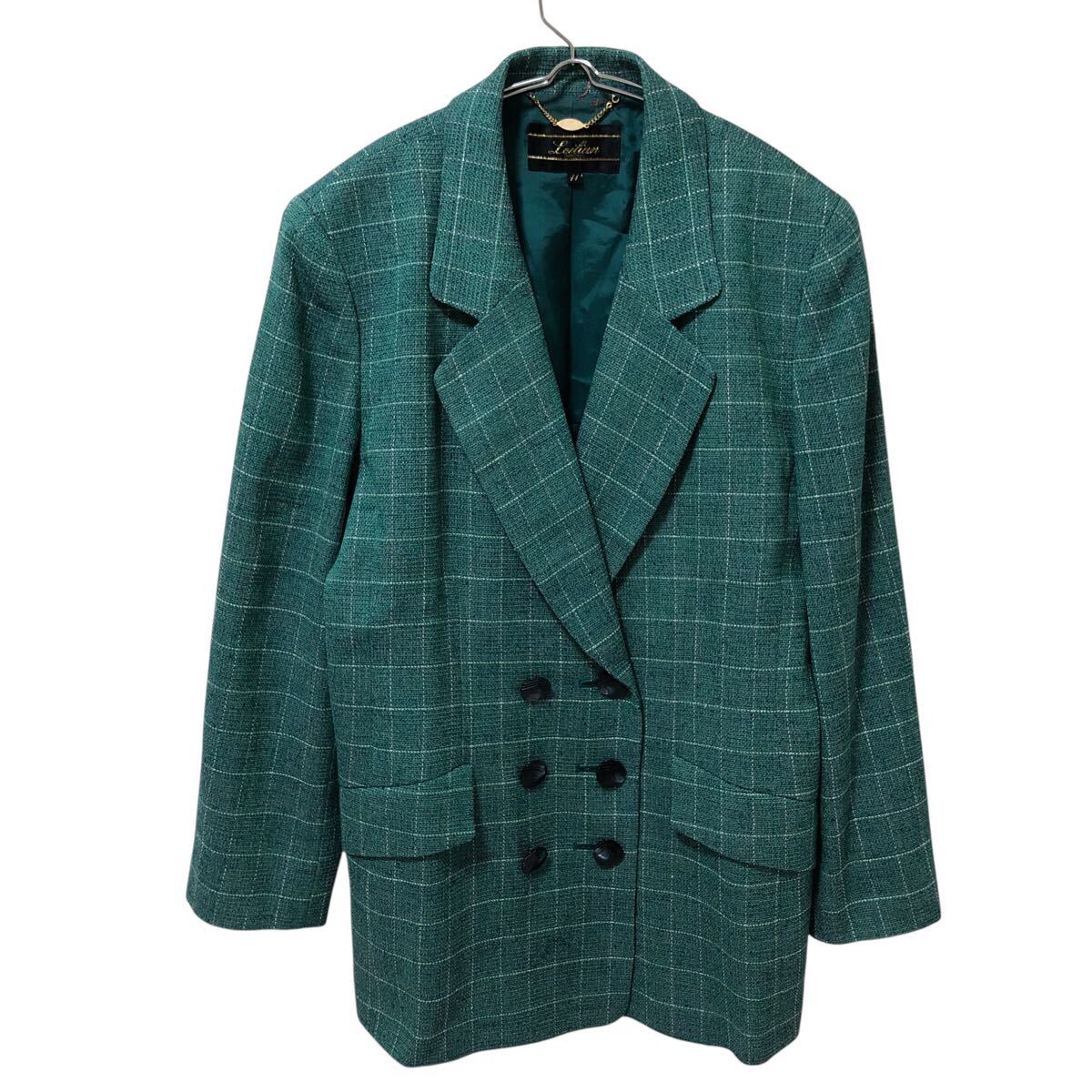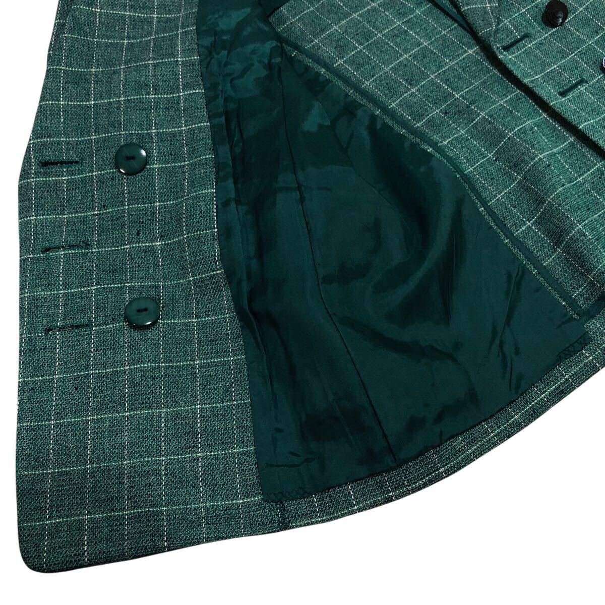 10NG005-22 Leilian レリアン シルク混 ジャケット ダブル トップス グラフチェック テーラードジャケット レディース 11 L相当 グリーン
