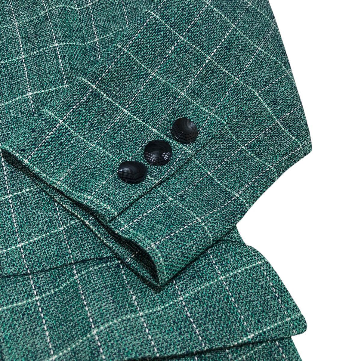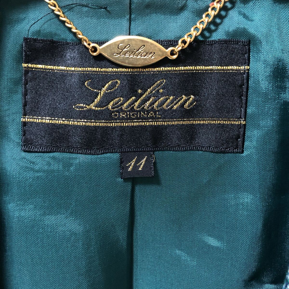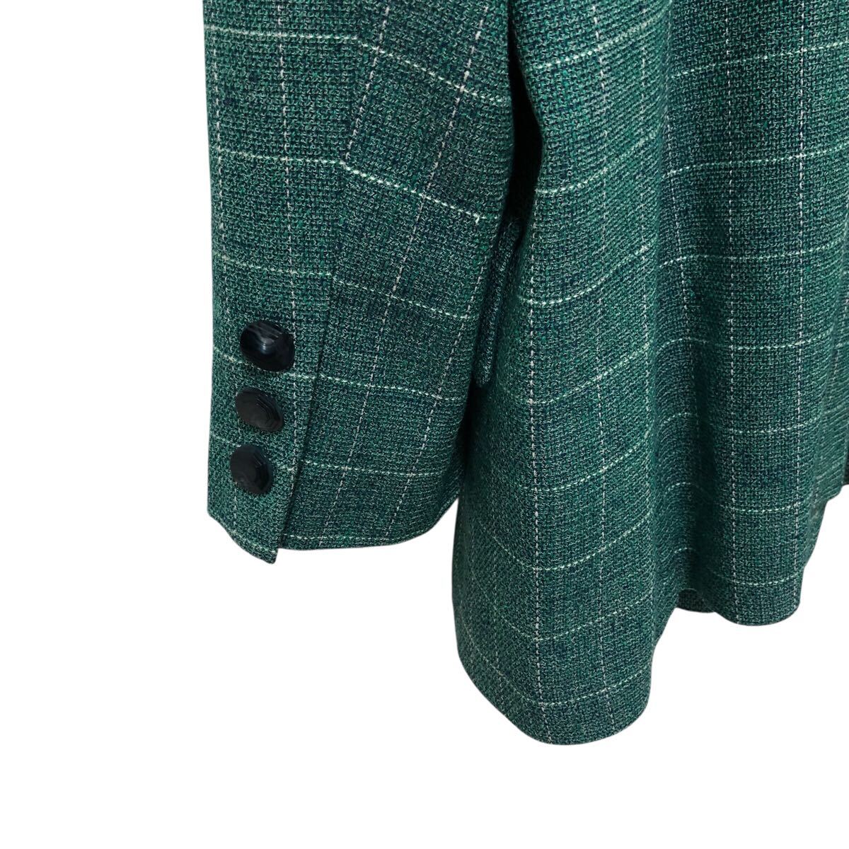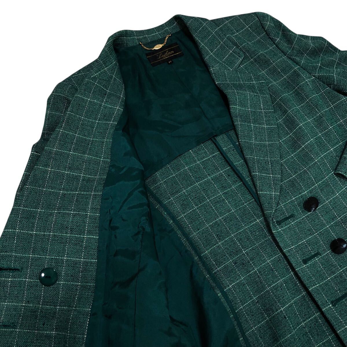 10NG005-22 Leilian レリアン シルク混 ジャケット ダブル トップス グラフチェック テーラードジャケット レディース 11 L相当 グリーン