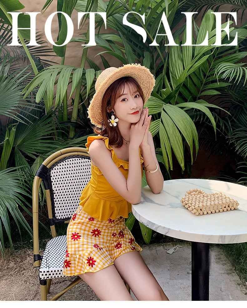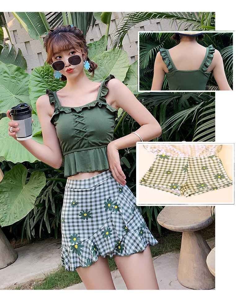 胸元は露出が少なく、フリル付いてかわいい!さらにフレアスカートの花×ギンガムチェック柄が◎