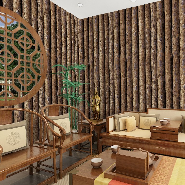 3D ウォールペーパー 【B253 ビンテージ 丸太 赤茶】 木目 53cm×50m 和モダン インテリア DIY のりなし 壁紙 クロス リメイク