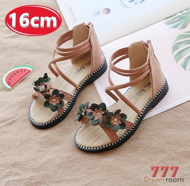 kids フラワー 編み上げ サンダル 【ピンク 16cm】 韓国子供服 キッズ ビーチサンダル フォーマル 女の子