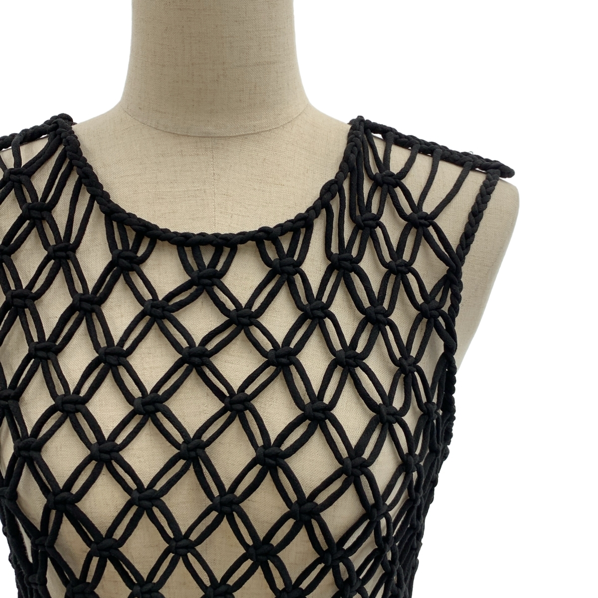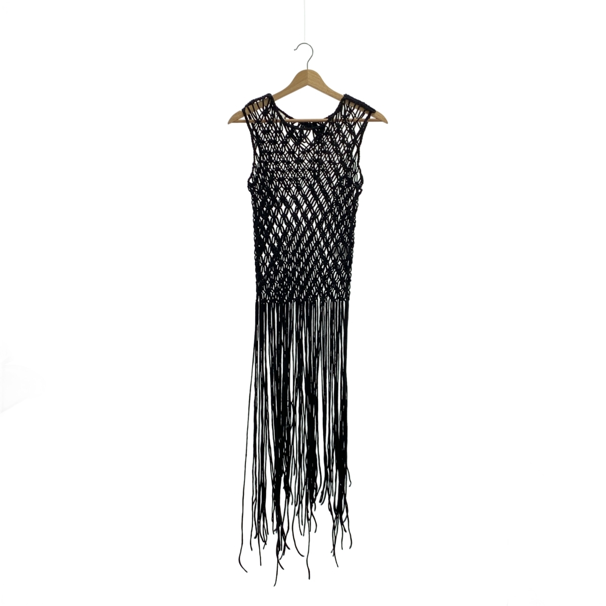 【美品】 DRIES VAN NOTEN / ドリスヴァンノッテン | 編み込み フリンジ ロゴプレート ベスト プルオーバー | M | ブラック | レディース