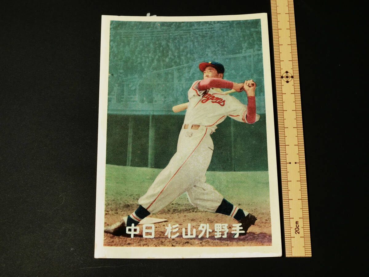 昭和20年代プロ野球選手総天然色ブロマイドカード『中日ドラゴンズ:杉山悟外野手』です。時代考慮すれば良好なコンディションです。サイズは物差しを目安にお願いします。画像でご判断の上ご入札下さい。ノークレーム・ノーリターンにてのお取引宜しくお願いいたします。その他多出品しています。