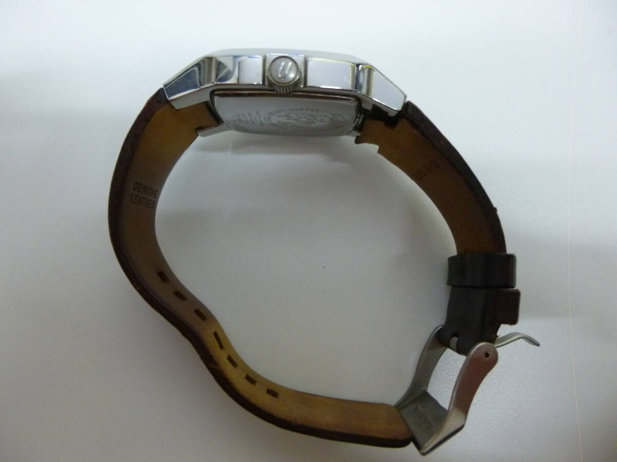 | N933 DIESEL ディーゼル DZ5100 腕時計 アナログ クオーツ 3針 ピンク文字盤 スクエア ステンレススチール 動作未確認 ベルト劣化 | ||