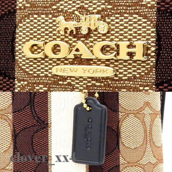 COACH/ショルダーバッグ/ハンドバッグ/C8416/ストライプ/ジャガード/モリー/カーキ/ブラウン/レザー/極美品/中古