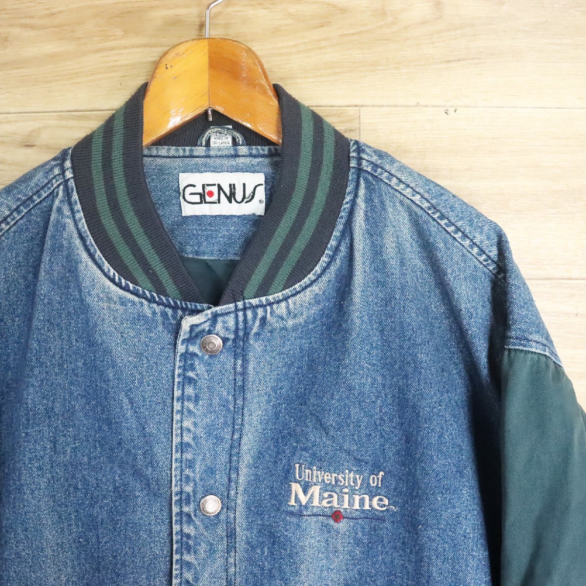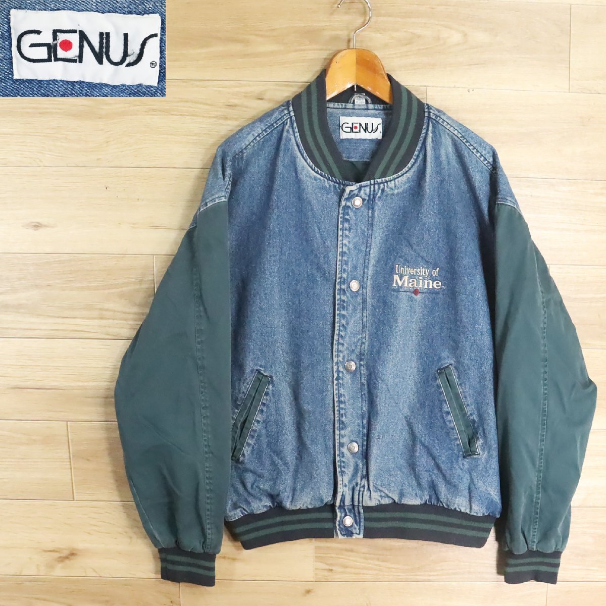 B16Y/D7.28-4 アメリカ古着 GENUS ジーナス デニムスタジャン アワードジャケット バーシティジャケット ブルゾン L メンズ