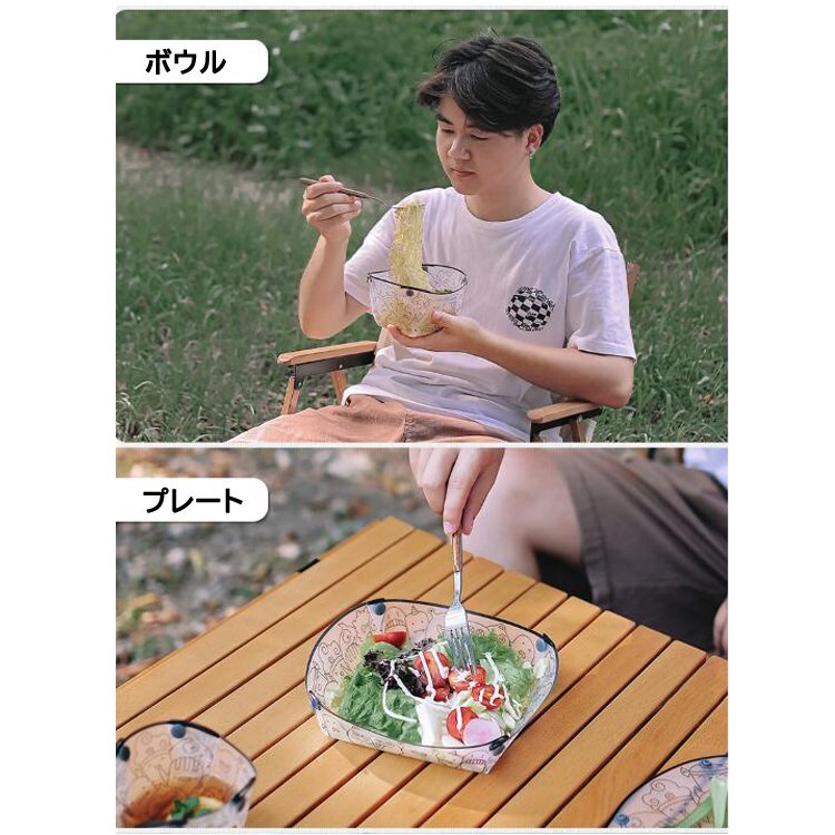 キャンプやピクニックなどアウトドアシーンに最適な折りたたみ食器です。