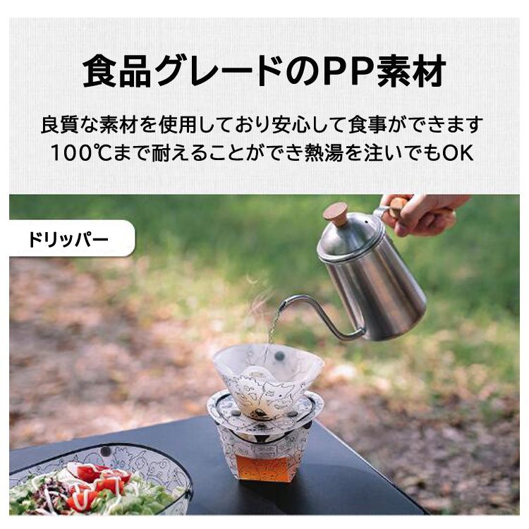 ◆折りたたみ食器 ポータブルテーブルウェア 耐熱 プレート(皿) ボウル ドリッパー 選べるデザイン お手入れ 組み立て簡単 スナップ付き 持ち運び便利 エコー 屋外 キャンプ BBQ ピクニックなどに【ドリッパー】IMFB770