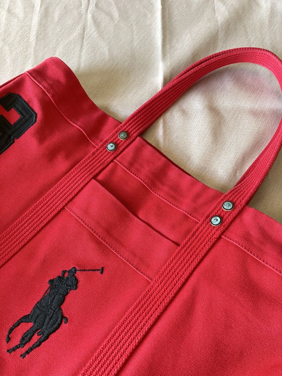 商品説明: POLO RALPH LAUREN ポロ トートバッグ 帆布 レッド ポニー刺繍 厚手 used サイズ: 約38㎝×約35㎝×約17㎝ 使用頻度の少ない中古品で多少の色褪せ、ヨレ、留め具(鋲)に劣化はありますが汚れや擦れ、破れ等はありません。画像で綺麗に見える部分も明るめで撮影をしていますので実際と若干の違いがあると思いますのでご了承願います。専門的な知識もないので質問はお控え下さい。説明と画像でご判断いただきジャンク扱いとしてのお渡しになります。禁煙、ペットなし。簡易梱包にて80サイズでの発送。
