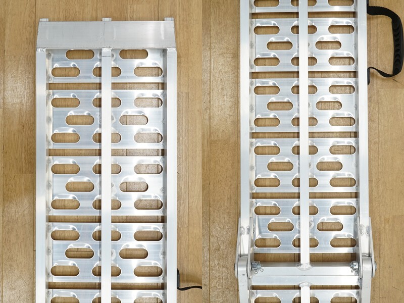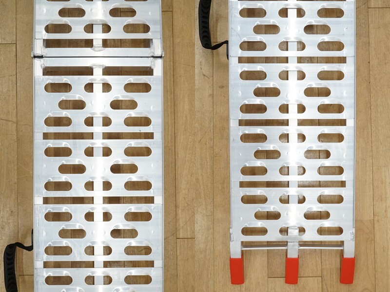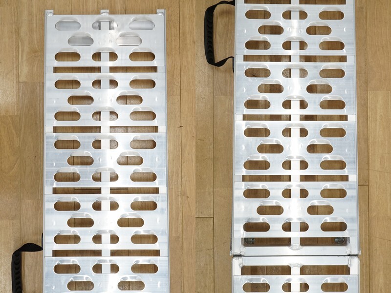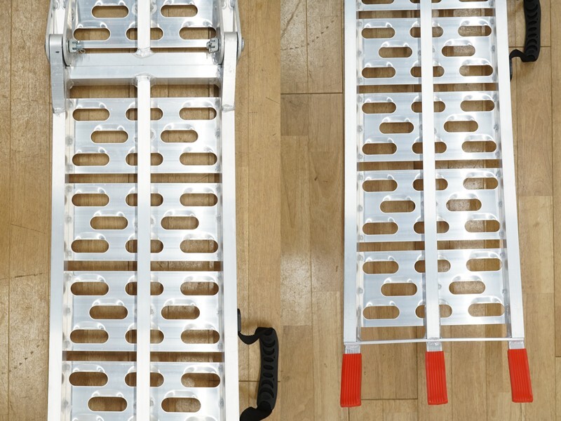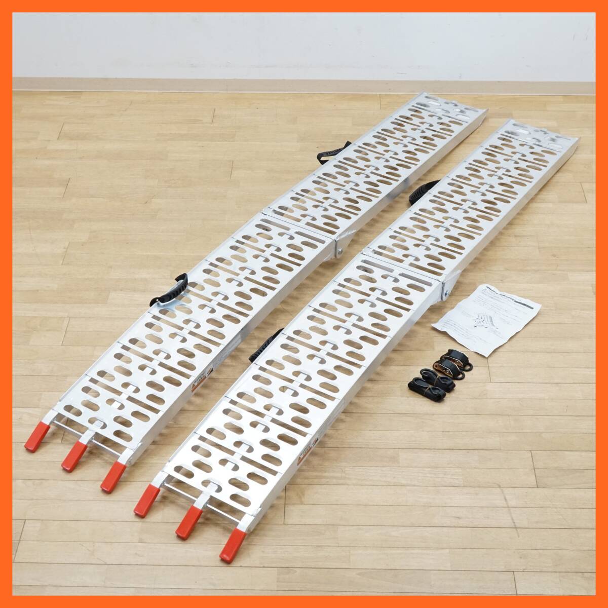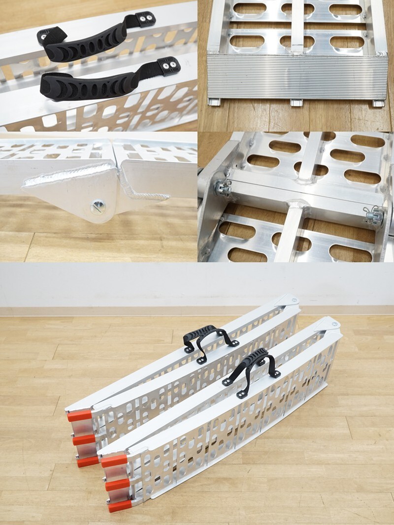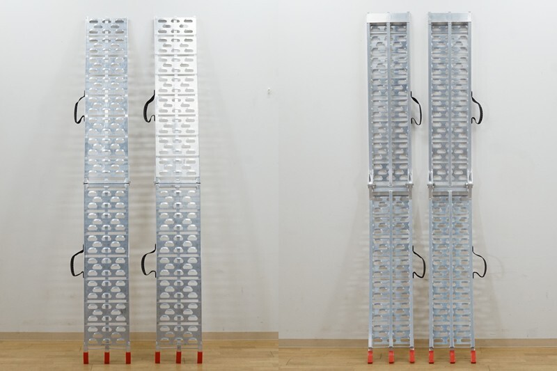 前ダ:【アルミブリッジ】アルミラダーレール 2本セット 折りたたみ式 耐荷重340kg ベルト付き 軽量 アルミスロープ ★送料無料★ |