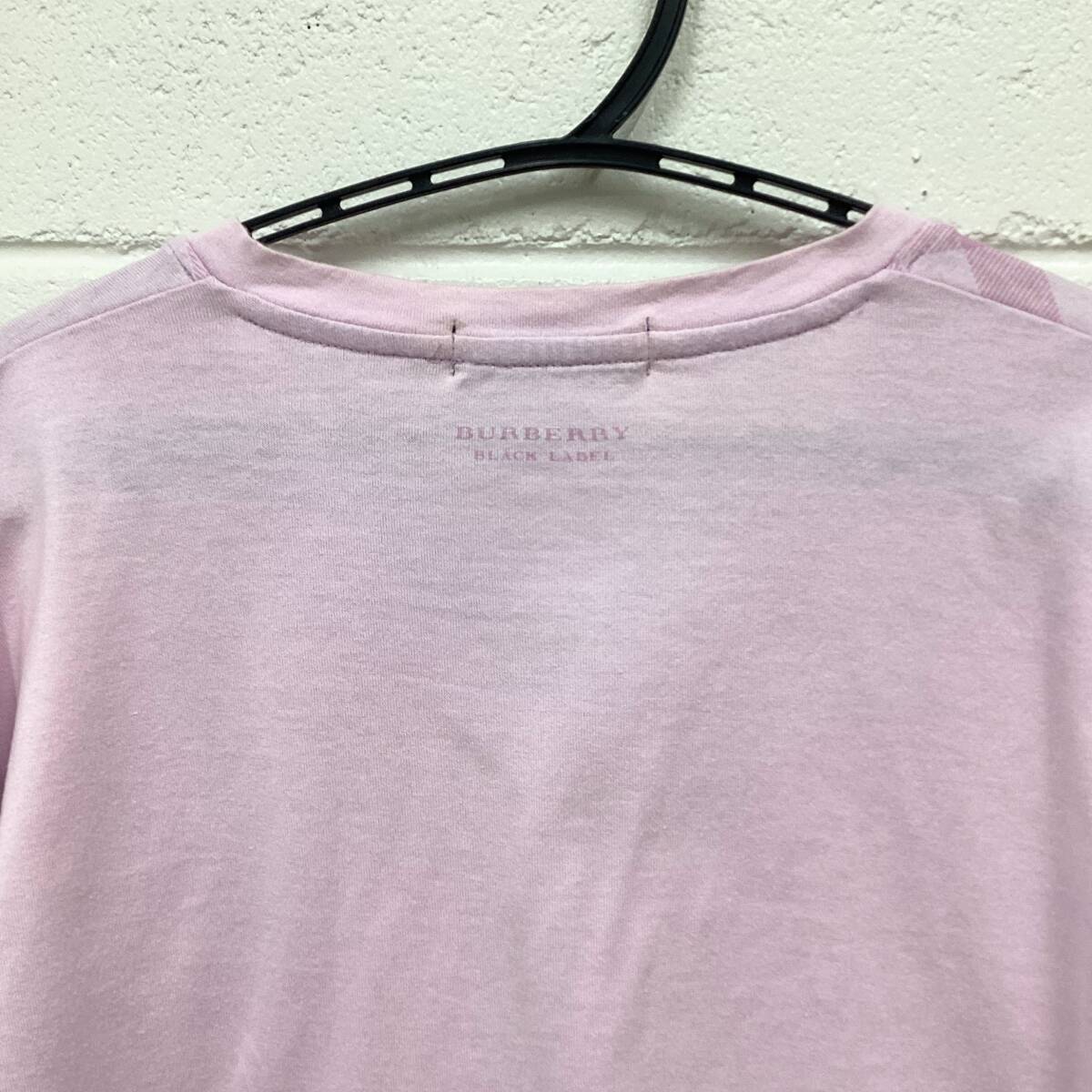 ◇BURBERRY BLACK LABEL バーバリーブラックレーベル Vネック長袖カットソー 2 三陽商会 Mサイズ ピンク tシャツ ワンポイント色 日本製 コットン