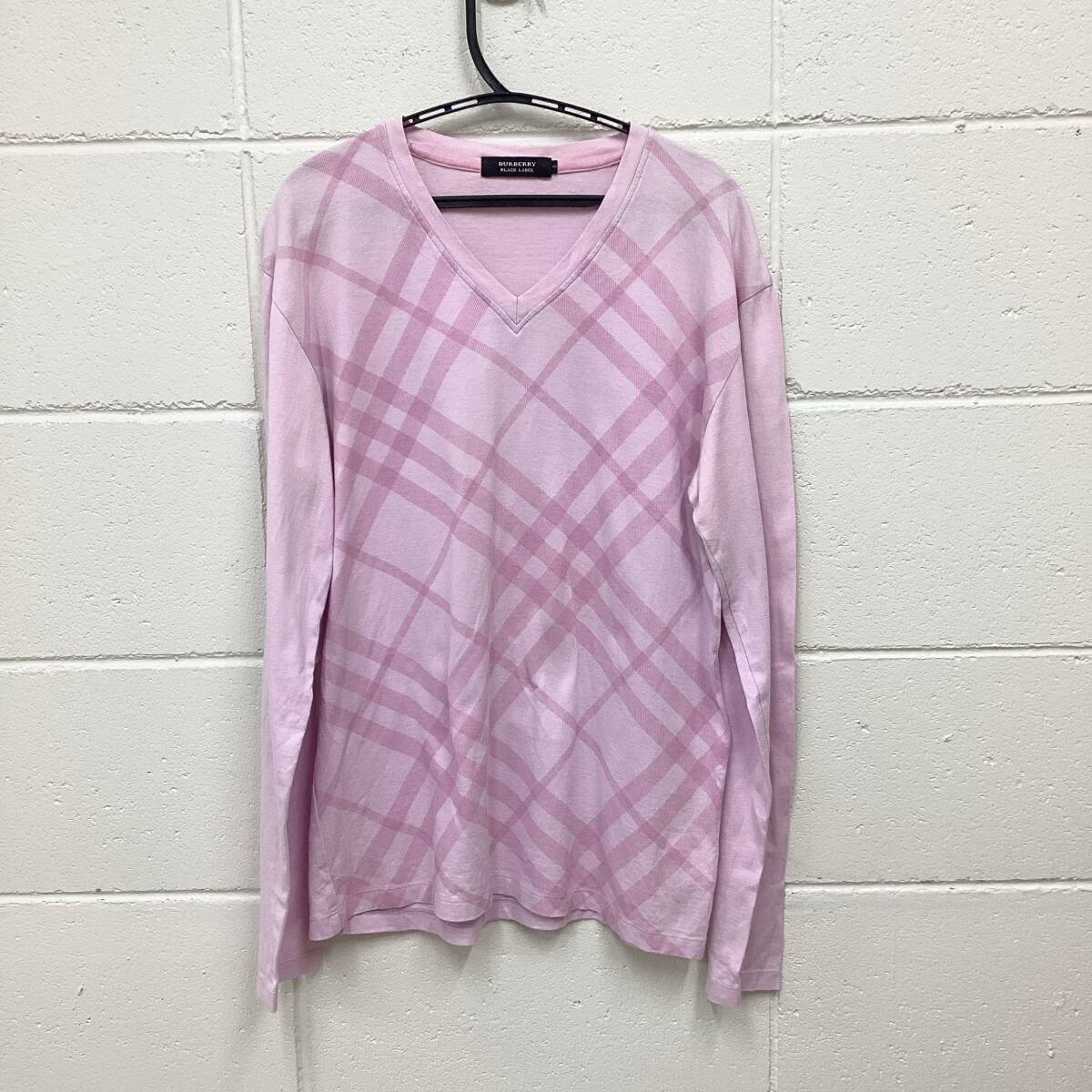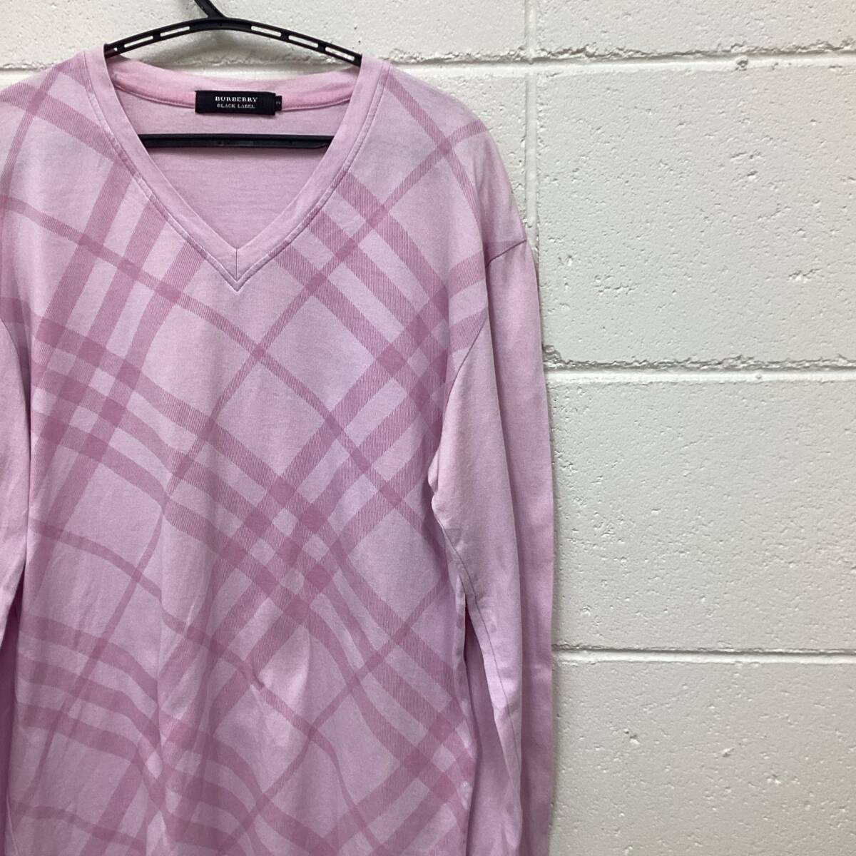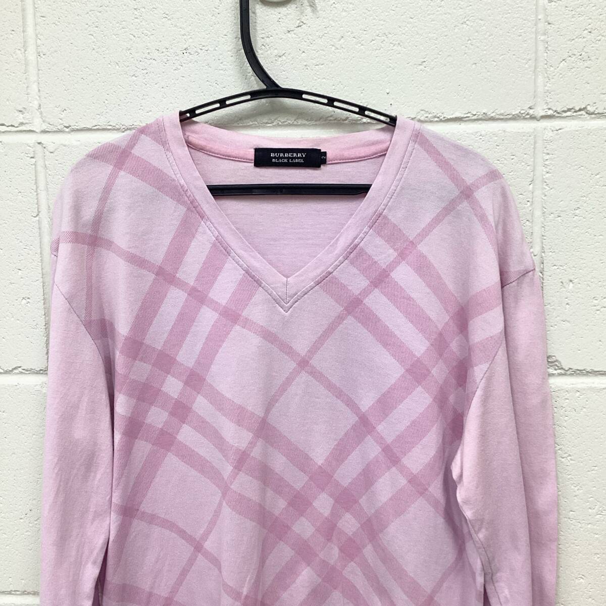 ◇BURBERRY BLACK LABEL バーバリーブラックレーベル Vネック長袖カットソー 2 三陽商会 Mサイズ ピンク  日本製 コットン