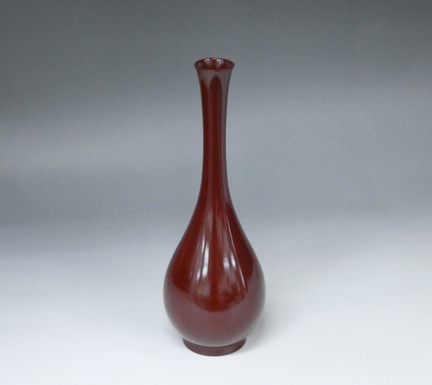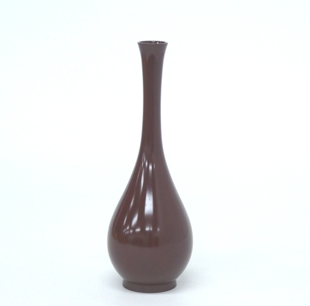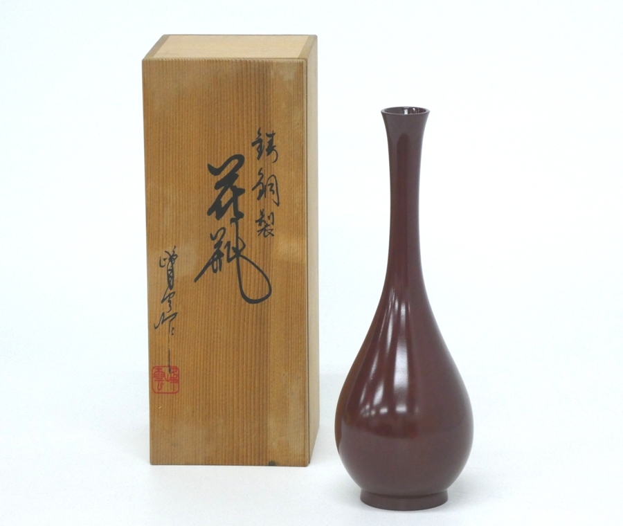 【伝統工芸品】 峰雲作 青銅製 花瓶 高岡銅器 木箱 高さ約25cm 鶴首 一輪挿し 朱銅色 花器 花入れ 富山県高岡市 |