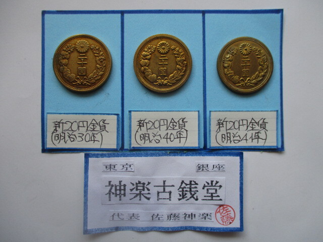 【身辺整理】古銭コレクション 新20円金貨3点一括①(明治30年・明治40年・明治41年)