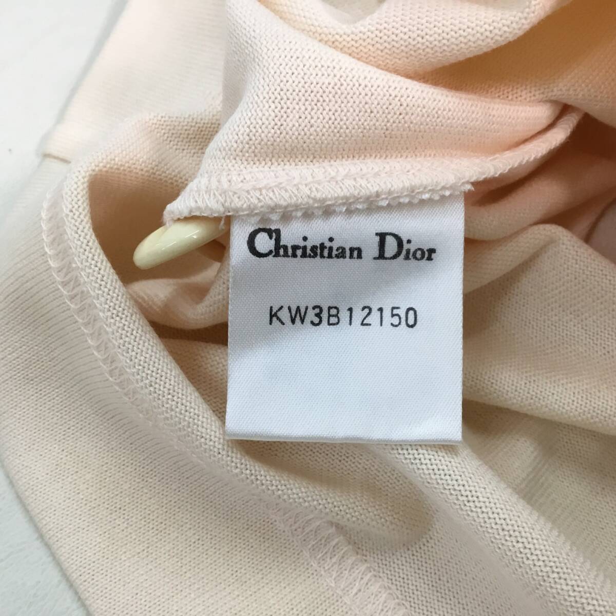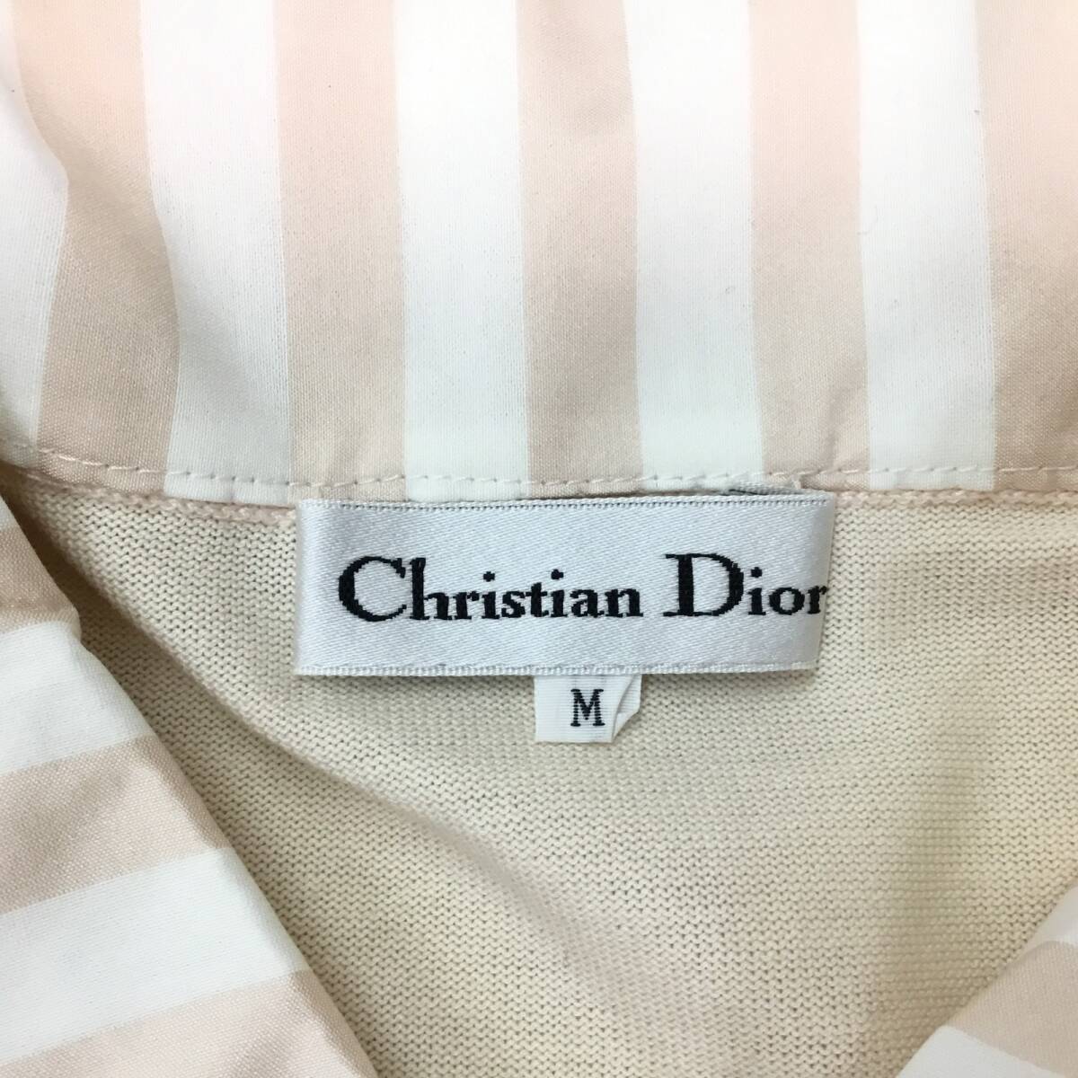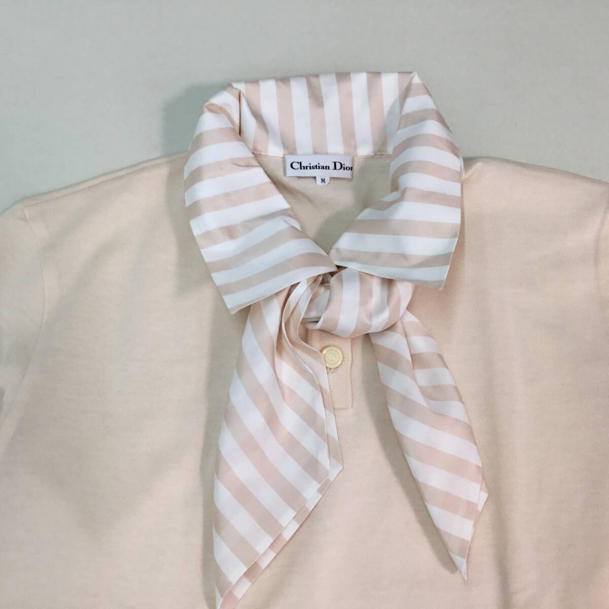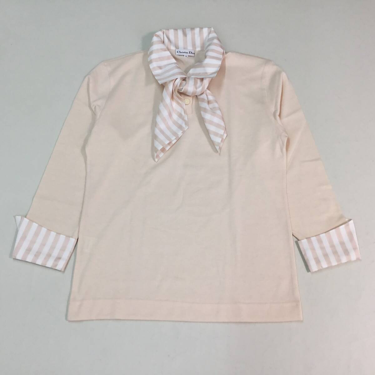 ■ Christian Dior クリスチャンディオール 長袖シャツ ピンクベージュ サイズM レディース トップス 襟袖ストライプ スカーフ付 0.24kg