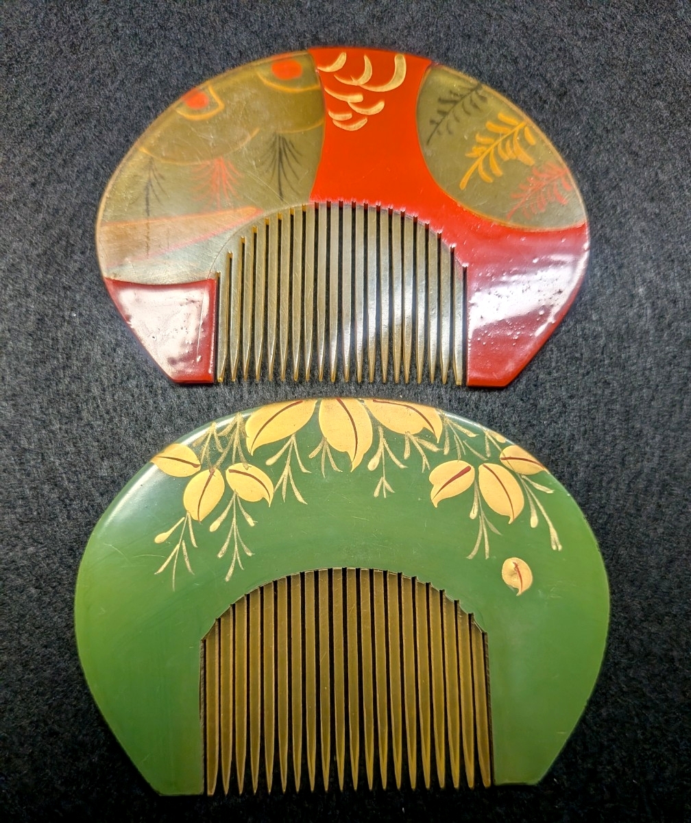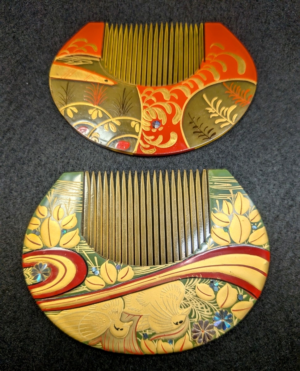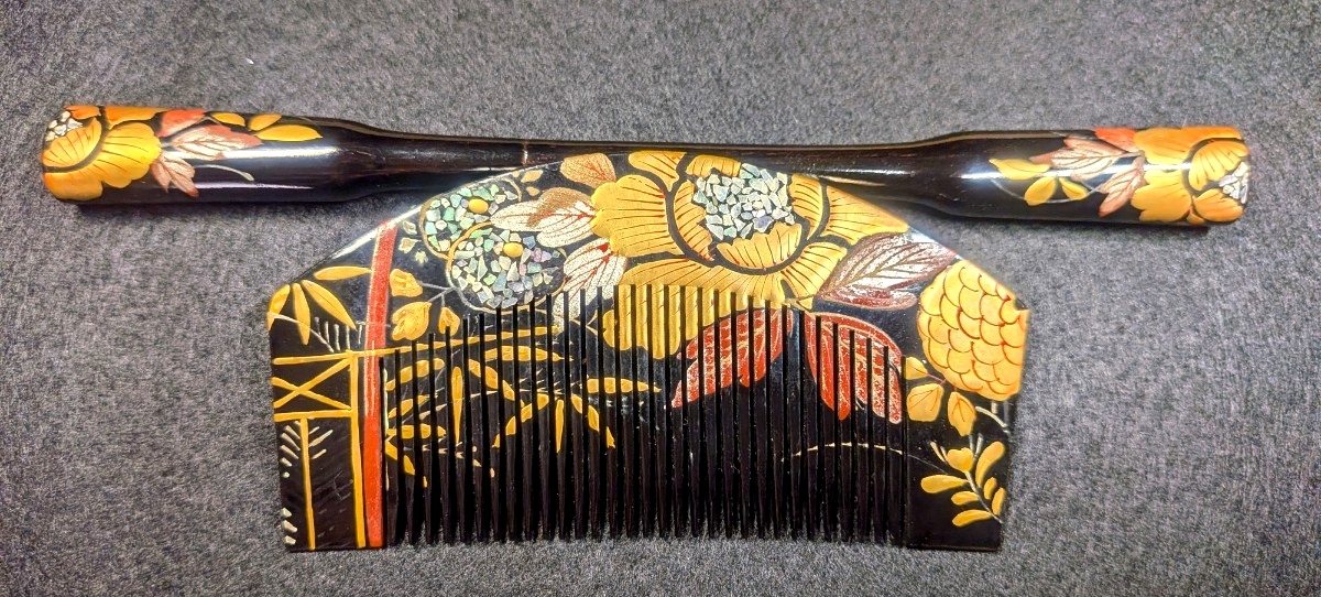 蒔絵と螺鈿が素敵な木製の櫛笄セットをまとめて出品させて頂きます。