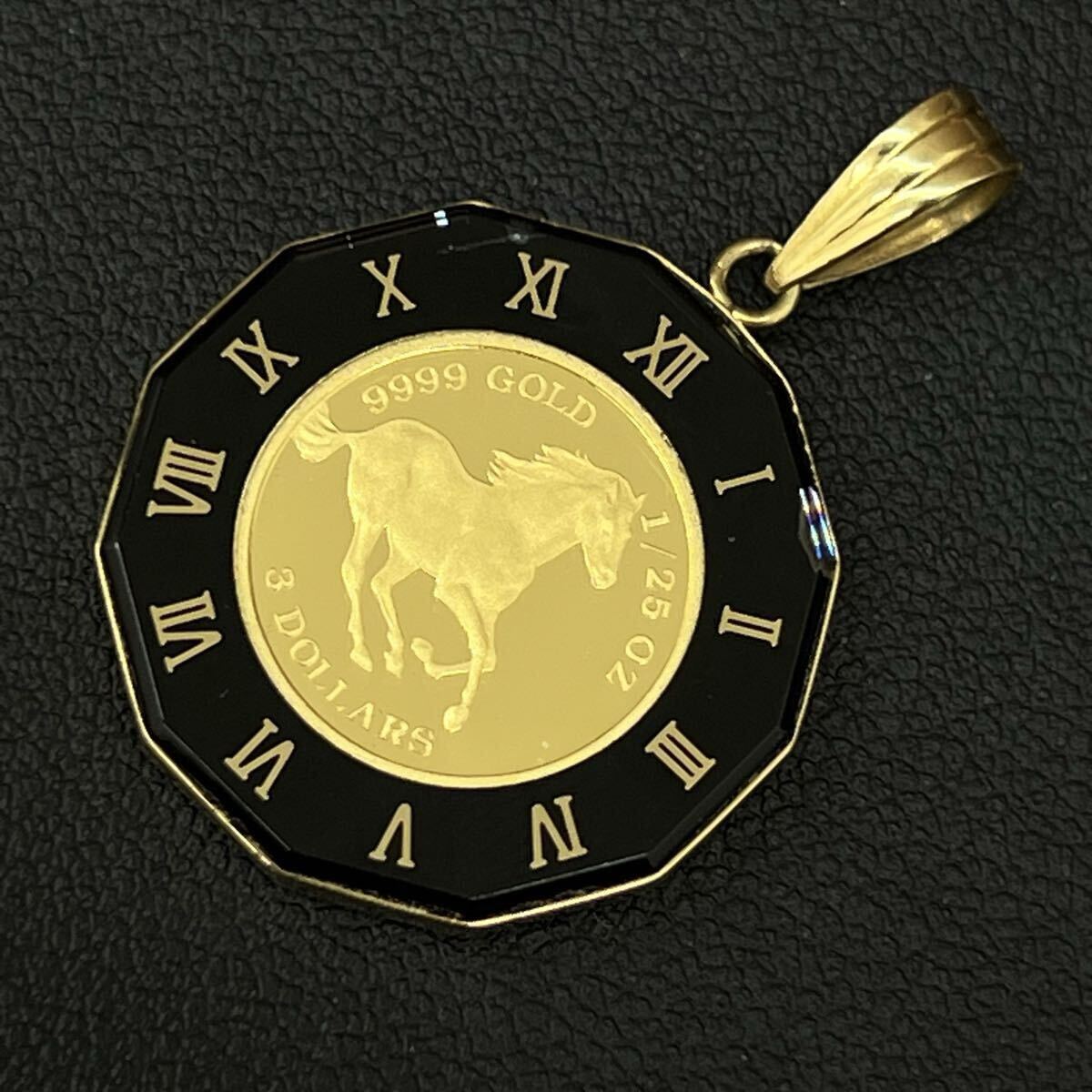 金貨の両面がガラスで保護されているデザインのペンダントです。